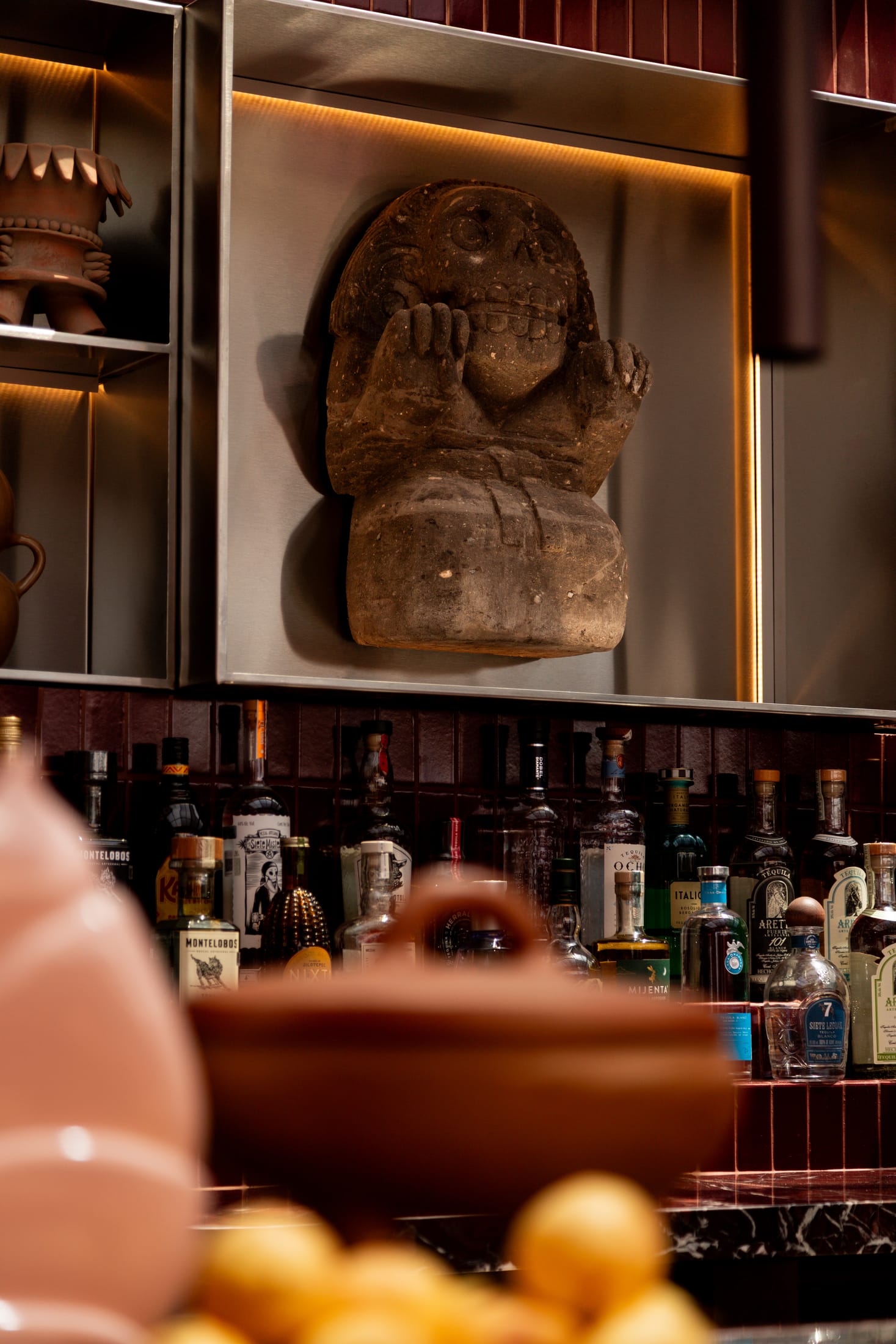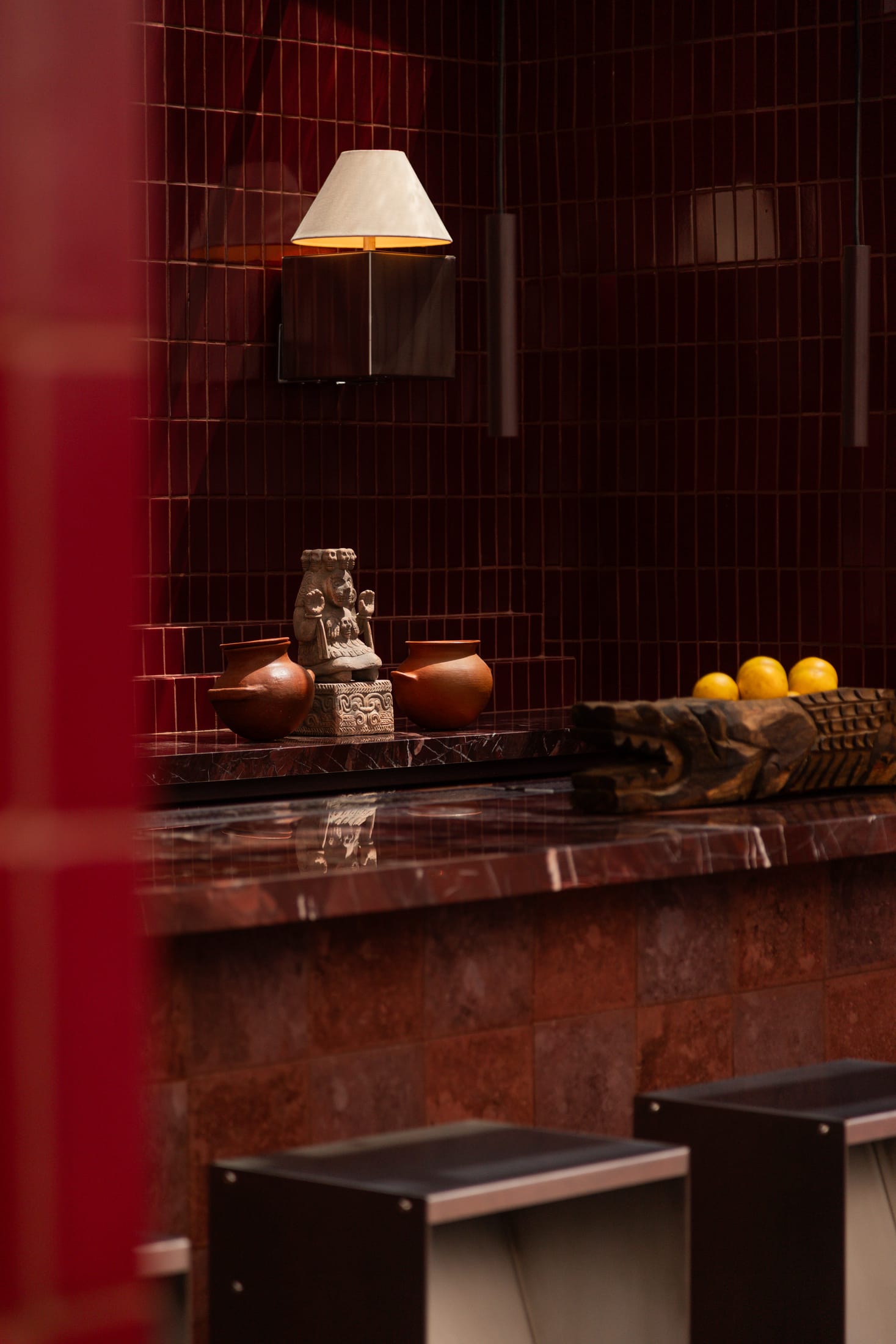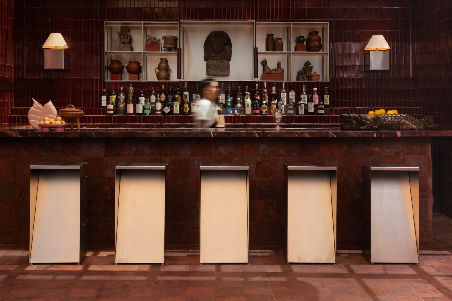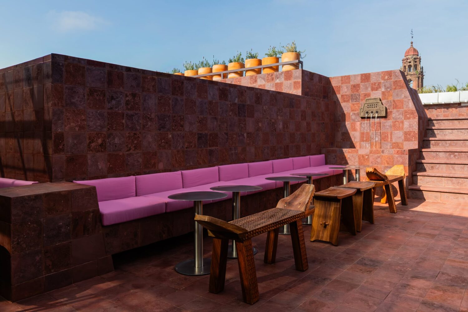 On top of Casa Hoyos Hotel in San Miguel de Allende sits Tonana Bar—a 270-square-metre rooftop space where prehispanic mythology and contemporary design collide. Mexico City designer Andrés Gutiérrez of A-G estudio has created something that honours the feminine divine through materials, shapes, and cultural depth.The name Tonana comes from Tonantzin—Nahuatl for “Our Sacred Mother”—the prehispanic Mother Goddess who gives life, devours it, and renews it all at once. That duality shows up everywhere here, in what’s chosen and how it’s shaped.Tezontle volcanic stone, often called “the volcanic blood of the earth”, covers the floors and walls. It’s rough and porous, grounding everything in Mexico’s geological past. Against this, brass fixtures and marble surfaces shine. The contrast works: raw meets refined.The furniture tells old stories. Custom seating draws from Cipactli, the primordial crocodile-earth creature from Aztec creation myths. These sculptural pieces, covered in dusty pink and deep burgundy, curve across the terrace. Water features nod to Chalchiuhtlicue, goddess of water and rivers—the nurturing side of the divine feminine.Half-Old and Half-New: Ignacia Guest House in Mexico City by Andrés Gutiérrez and Factor Eficiencia.Ignacia Guest House shares its name with its once-upon-a-time housekeeper (who looked after it for over 40 years), but its spirit is decidedly its own. Yellowtrace A G Studio Tonana Rooftop Bar San Miguel De Allende Mexico 11 Opt80 Yellowtrace A G Studio Tonana Rooftop Bar San Miguel De Allende Mexico 15 Opt80 Yellowtrace A G Studio Tonana Rooftop Bar San Miguel De Allende Mexico 04 Opt80 Yellowtrace A G Studio Tonana Rooftop Bar San Miguel De Allende Mexico 18 Opt80 Yellowtrace A G Studio Tonana Rooftop Bar San Miguel De Allende Mexico 03 Opt80 Yellowtrace A G Studio Tonana Rooftop Bar San Miguel De Allende Mexico 01 Opt80 Yellowtrace A G Studio Tonana Rooftop Bar San Miguel De Allende Mexico 02 Opt80 Yellowtrace A G Studio Tonana Rooftop Bar San Miguel De Allende Mexico 24 Opt80 Yellowtrace A G Studio Tonana Rooftop Bar San Miguel De Allende Mexico 22 Opt80 Yellowtrace A G Studio Tonana Rooftop Bar San Miguel De Allende Mexico 05 Opt80 Yellowtrace A G Studio Tonana Rooftop Bar San Miguel De Allende Mexico 21 Opt80 Yellowtrace A G Studio Tonana Rooftop Bar San Miguel De Allende Mexico 09 Opt80 Yellowtrace A G Studio Tonana Rooftop Bar San Miguel De Allende Mexico 17 Opt80 Yellowtrace A G Studio Tonana Rooftop Bar San Miguel De Allende Mexico 10 Opt80 Yellowtrace A G Studio Tonana Rooftop Bar San Miguel De Allende Mexico 06 Opt80 Yellowtrace A G Studio Tonana Rooftop Bar San Miguel De Allende Mexico 14 Opt80 Yellowtrace A G Studio Tonana Rooftop Bar San Miguel De Allende Mexico 26 Opt80 Yellowtrace A G Studio Tonana Rooftop Bar San Miguel De Allende Mexico 12 Opt80 Yellowtrace A G Studio Tonana Rooftop Bar San Miguel De Allende Mexico 20 Opt80 Yellowtrace A G Studio Tonana Rooftop Bar San Miguel De Allende Mexico 08 Opt80 Yellowtrace A G Studio Tonana Rooftop Bar San Miguel De Allende Mexico 23 Opt80 Yellowtrace A G Studio Tonana Rooftop Bar San Miguel De Allende Mexico 13 Opt80 Yellowtrace A G Studio Tonana Rooftop Bar San Miguel De Allende Mexico 16 Opt80 Behind the bar, a custom shelving unit displays pre-Columbian vessels and artifacts alongside bottles of spirits. The bar front glows with illuminated panels set against a burgundy and terracotta backdrop. Brass lighting warms the whole space, especially striking against the wine-coloured mosaic tiles on the interior walls.The cocktails extend the idea further. They honour ancestral healer-women through infusions based on medicinal plants and botanicals. Each drink reinterprets traditional healing practices for today.Gutiérrez collaborated with Sebastián de Los Angeles and Federico Mascarell on the design, with Claudia Escalante overseeing the project. What they’ve made is a rooftop bar that’s also a cultural statement—ancient wisdom translated into volcanic stone, brass, and marble.Originario Design Store in Mexico City by Andrés Gutiérrez.Located in five ever-changing rooms in Colonia Roma, the trail blazing space is a hot bed for experimentation, exhibiting new ideas and works from young national talent. [Images courtesy of Andrés Gutiérrez / A-G estudio. Photography by Leandro Bulzzano.] Share the love: Click to share on Facebook (Opens in new window) Facebook Click to share on X (Opens in new window) X Click to share on LinkedIn (Opens in new window) LinkedIn Click to email a link to a friend (Opens in new window) Email Click to share on Pinterest (Opens in new window) Pinterest Leave a Reply Cancel ReplyYour email address will not be published.CommentName* Email* Website Δ