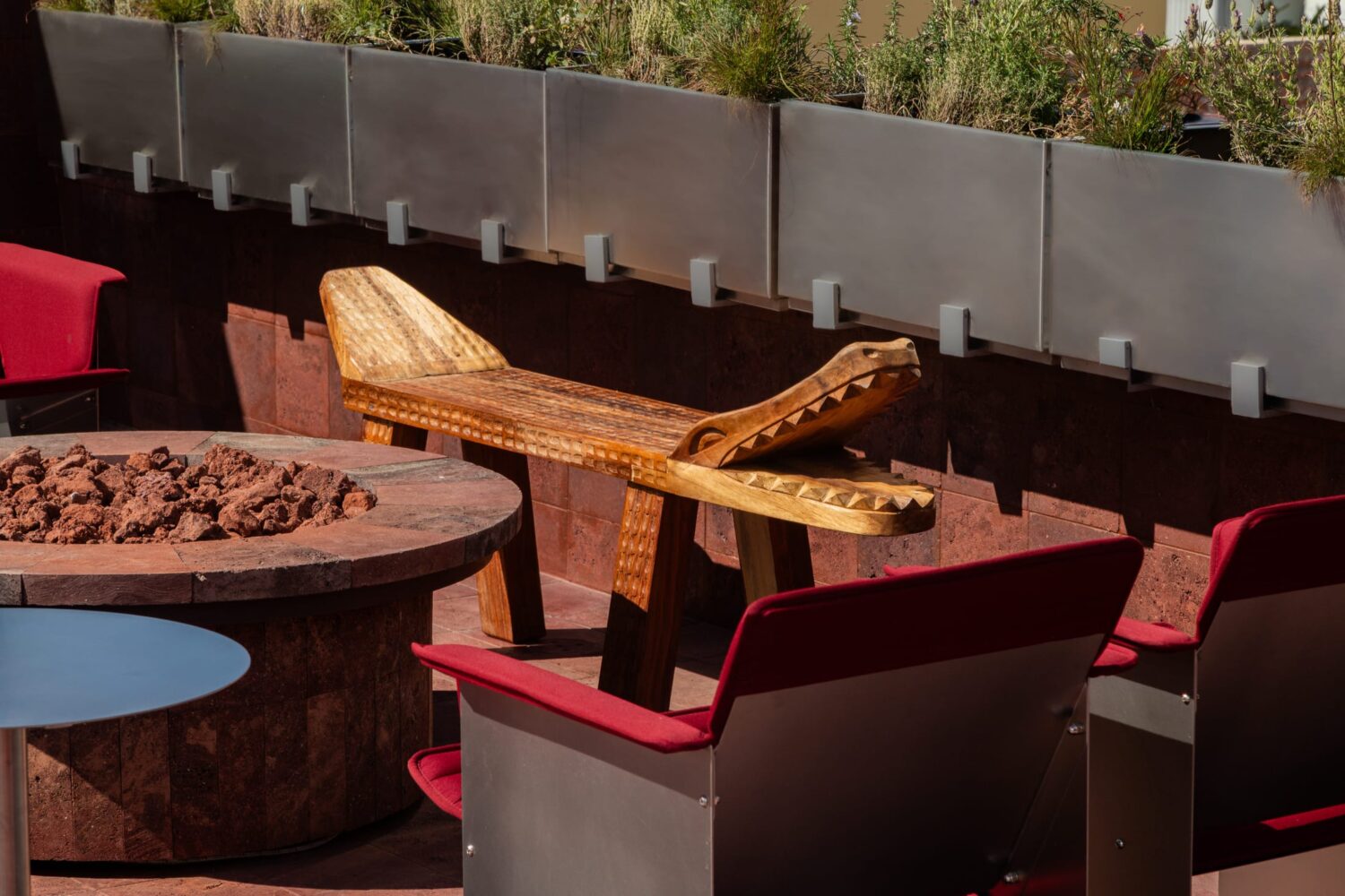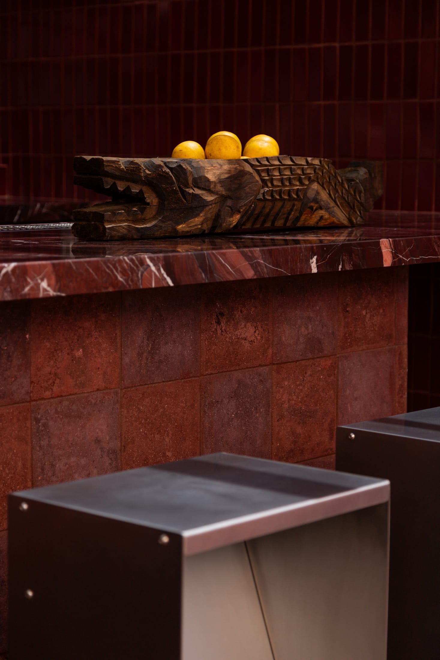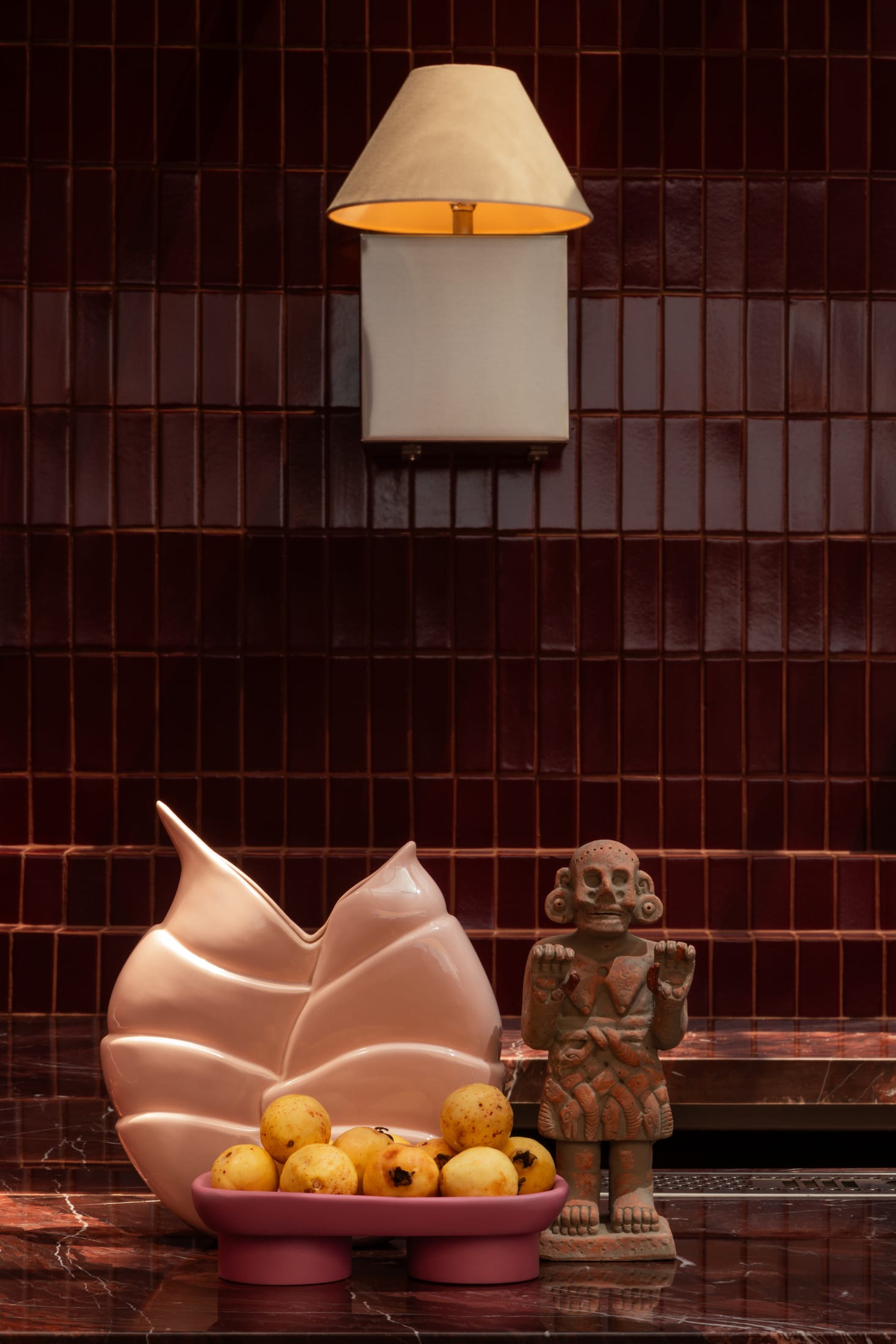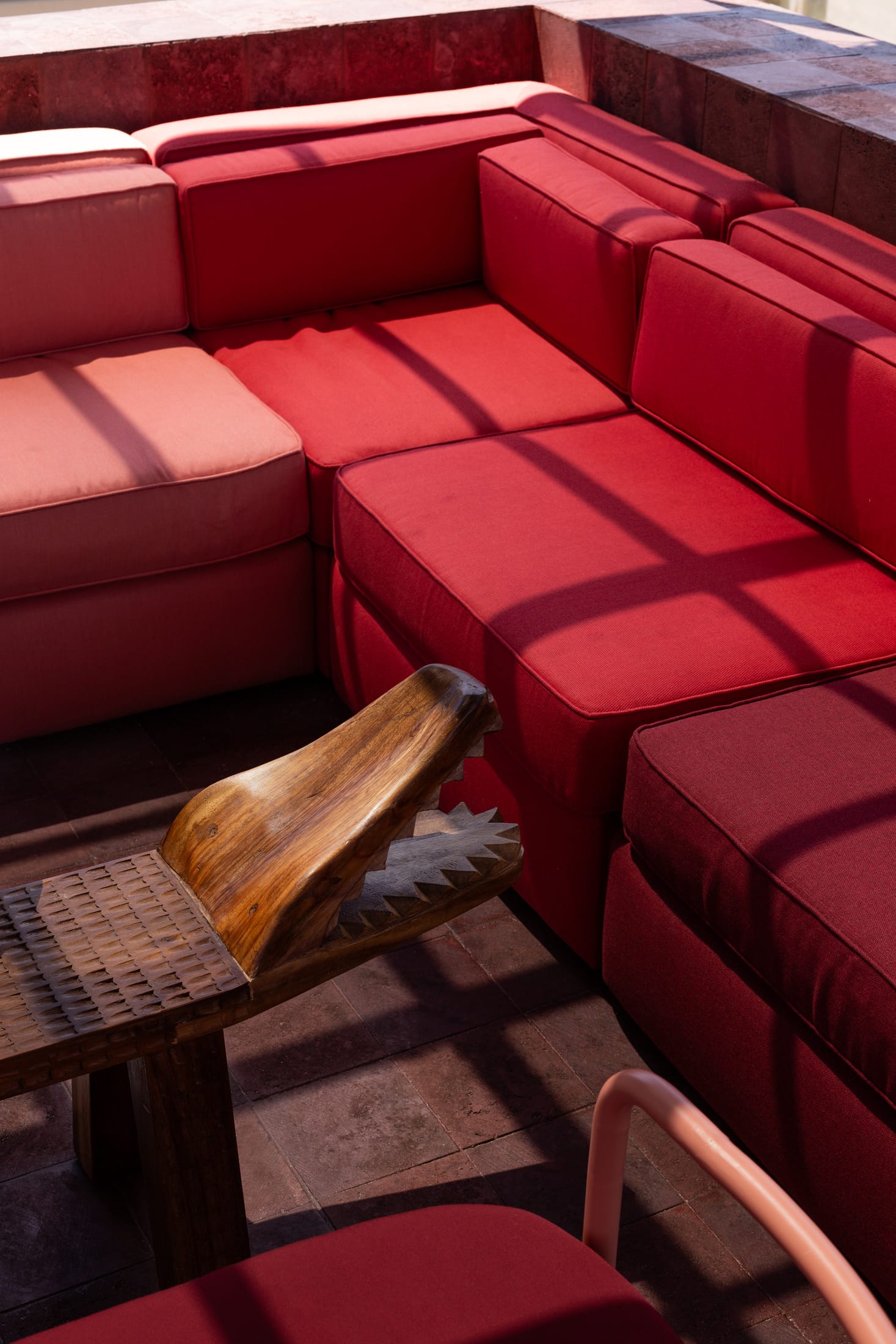 On top of Casa Hoyos Hotel in San Miguel de Allende sits Tonana Bar—a 270-square-metre rooftop space where prehispanic mythology and contemporary design collide. Mexico City designer Andrés Gutiérrez of A-G estudio has created something that honours the feminine divine through materials, shapes, and cultural depth.The name Tonana comes from Tonantzin—Nahuatl for “Our Sacred Mother”—the prehispanic Mother Goddess who gives life, devours it, and renews it all at once. That duality shows up everywhere here, in what’s chosen and how it’s shaped.Tezontle volcanic stone, often called “the volcanic blood of the earth”, covers the floors and walls. It’s rough and porous, grounding everything in Mexico’s geological past. Against this, brass fixtures and marble surfaces shine. The contrast works: raw meets refined.The furniture tells old stories. Custom seating draws from Cipactli, the primordial crocodile-earth creature from Aztec creation myths. These sculptural pieces, covered in dusty pink and deep burgundy, curve across the terrace. Water features nod to Chalchiuhtlicue, goddess of water and rivers—the nurturing side of the divine feminine.Half-Old and Half-New: Ignacia Guest House in Mexico City by Andrés Gutiérrez and Factor Eficiencia.Ignacia Guest House shares its name with its once-upon-a-time housekeeper (who looked after it for over 40 years), but its spirit is decidedly its own. Yellowtrace A G Studio Tonana Rooftop Bar San Miguel De Allende Mexico 11 Opt80 Yellowtrace A G Studio Tonana Rooftop Bar San Miguel De Allende Mexico 15 Opt80 Yellowtrace A G Studio Tonana Rooftop Bar San Miguel De Allende Mexico 04 Opt80 Yellowtrace A G Studio Tonana Rooftop Bar San Miguel De Allende Mexico 18 Opt80 Yellowtrace A G Studio Tonana Rooftop Bar San Miguel De Allende Mexico 03 Opt80 Yellowtrace A G Studio Tonana Rooftop Bar San Miguel De Allende Mexico 01 Opt80 Yellowtrace A G Studio Tonana Rooftop Bar San Miguel De Allende Mexico 02 Opt80 Yellowtrace A G Studio Tonana Rooftop Bar San Miguel De Allende Mexico 24 Opt80 Yellowtrace A G Studio Tonana Rooftop Bar San Miguel De Allende Mexico 22 Opt80 Yellowtrace A G Studio Tonana Rooftop Bar San Miguel De Allende Mexico 05 Opt80 Yellowtrace A G Studio Tonana Rooftop Bar San Miguel De Allende Mexico 21 Opt80 Yellowtrace A G Studio Tonana Rooftop Bar San Miguel De Allende Mexico 09 Opt80 Yellowtrace A G Studio Tonana Rooftop Bar San Miguel De Allende Mexico 17 Opt80 Yellowtrace A G Studio Tonana Rooftop Bar San Miguel De Allende Mexico 10 Opt80 Yellowtrace A G Studio Tonana Rooftop Bar San Miguel De Allende Mexico 06 Opt80 Yellowtrace A G Studio Tonana Rooftop Bar San Miguel De Allende Mexico 14 Opt80 Yellowtrace A G Studio Tonana Rooftop Bar San Miguel De Allende Mexico 26 Opt80 Yellowtrace A G Studio Tonana Rooftop Bar San Miguel De Allende Mexico 12 Opt80 Yellowtrace A G Studio Tonana Rooftop Bar San Miguel De Allende Mexico 20 Opt80 Yellowtrace A G Studio Tonana Rooftop Bar San Miguel De Allende Mexico 08 Opt80 Yellowtrace A G Studio Tonana Rooftop Bar San Miguel De Allende Mexico 23 Opt80 Yellowtrace A G Studio Tonana Rooftop Bar San Miguel De Allende Mexico 13 Opt80 Yellowtrace A G Studio Tonana Rooftop Bar San Miguel De Allende Mexico 16 Opt80 Behind the bar, a custom shelving unit displays pre-Columbian vessels and artifacts alongside bottles of spirits. The bar front glows with illuminated panels set against a burgundy and terracotta backdrop. Brass lighting warms the whole space, especially striking against the wine-coloured mosaic tiles on the interior walls.The cocktails extend the idea further. They honour ancestral healer-women through infusions based on medicinal plants and botanicals. Each drink reinterprets traditional healing practices for today.Gutiérrez collaborated with Sebastián de Los Angeles and Federico Mascarell on the design, with Claudia Escalante overseeing the project. What they’ve made is a rooftop bar that’s also a cultural statement—ancient wisdom translated into volcanic stone, brass, and marble.Originario Design Store in Mexico City by Andrés Gutiérrez.Located in five ever-changing rooms in Colonia Roma, the trail blazing space is a hot bed for experimentation, exhibiting new ideas and works from young national talent. [Images courtesy of Andrés Gutiérrez / A-G estudio. Photography by Leandro Bulzzano.] Share the love: Click to share on Facebook (Opens in new window) Facebook Click to share on X (Opens in new window) X Click to share on LinkedIn (Opens in new window) LinkedIn Click to email a link to a friend (Opens in new window) Email Click to share on Pinterest (Opens in new window) Pinterest Leave a Reply Cancel ReplyYour email address will not be published.CommentName* Email* Website Δ