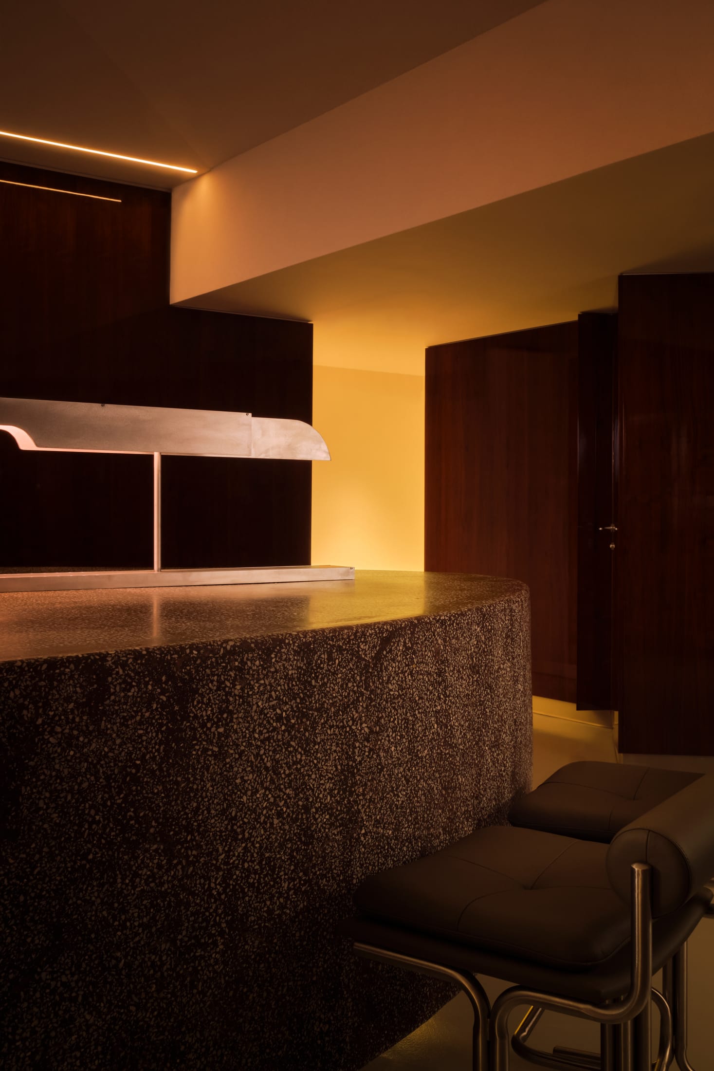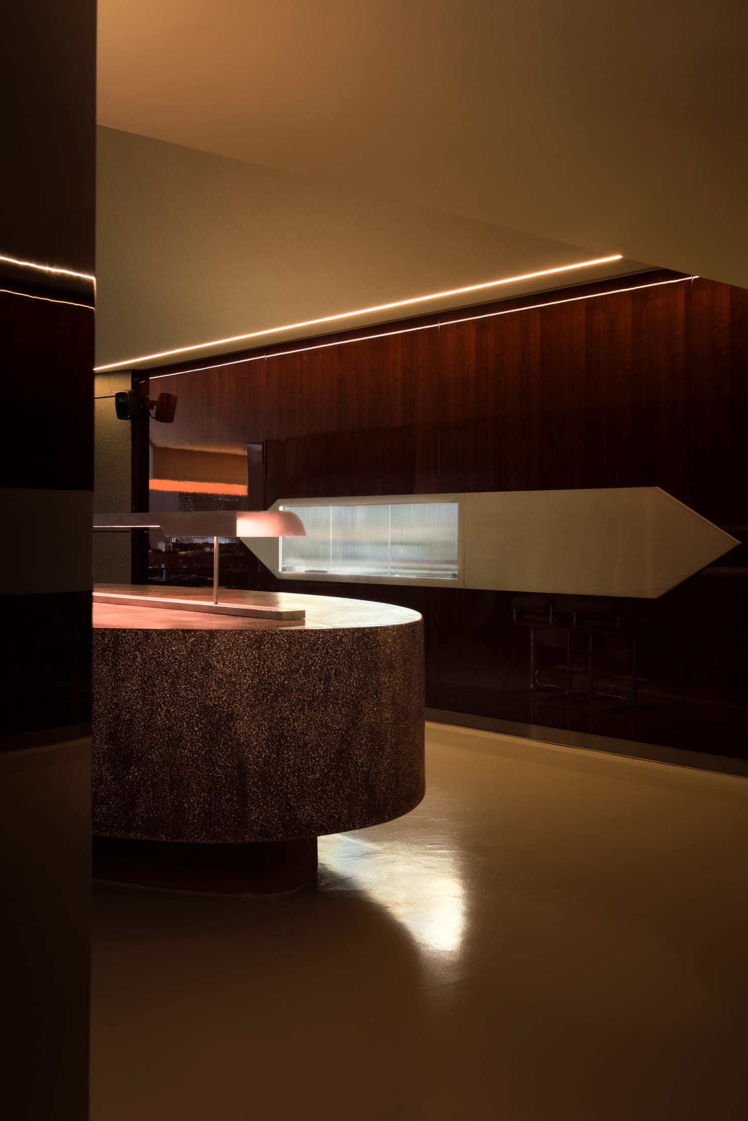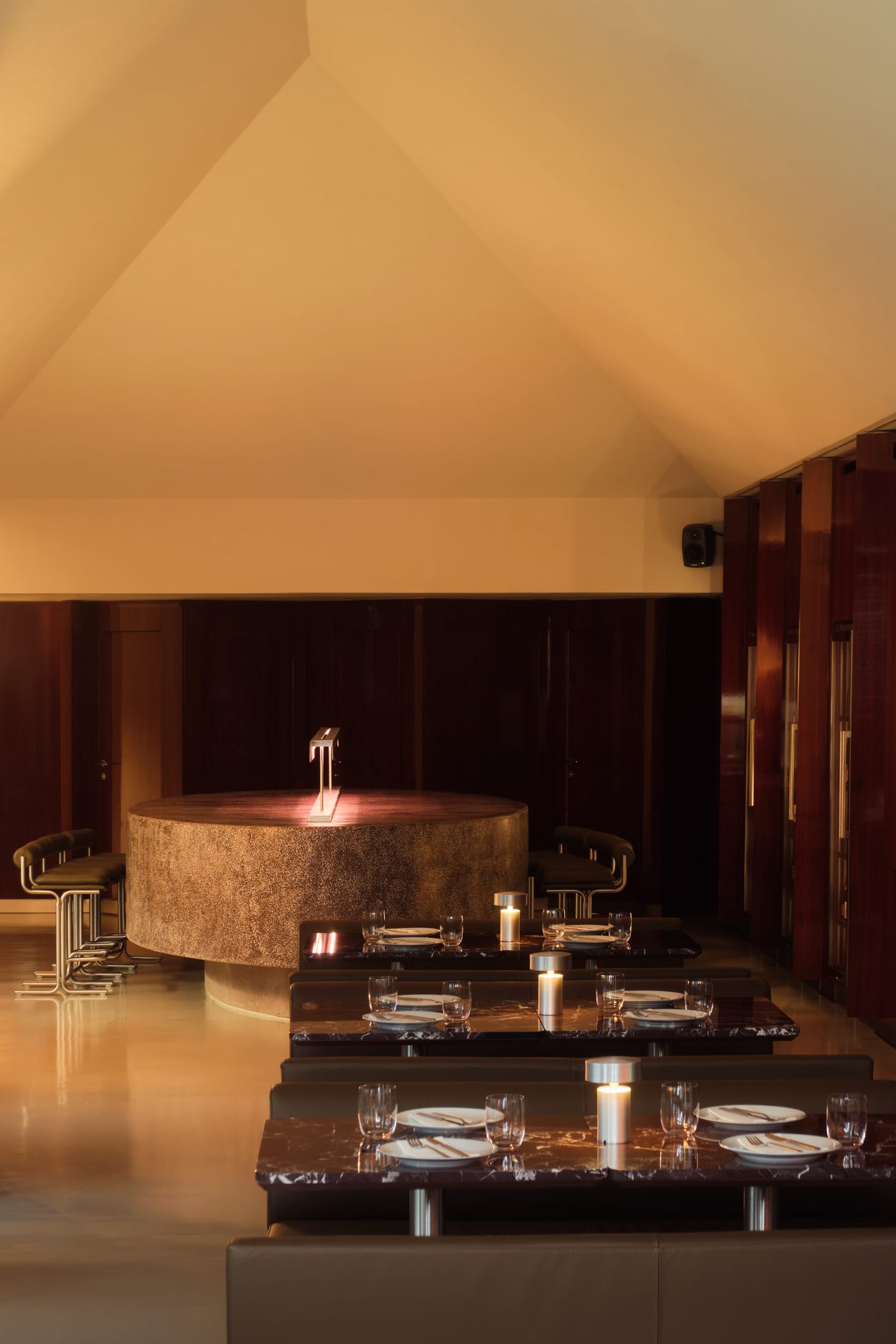 Bucharest’s newest dining destination sits on the ground floor of the Milló office building in the city’s historic centre—a space where Art Deco heritage meets sharp contemporary design. Architects Anda Zota and Elena Viziteu from AÉ02 have conceptualised a 498-square-metre restaurant that plays with geometry, light, and local materials to create something more sculptural than your typical dining room.The real showstopper here is the ceiling. Above the main dining table, it morphs into what the architects call a “volcano of light”—a dramatic central focal point that draws the eye upward and creates an intimate, almost theatrical atmosphere. Over at the cocktail area, the ceiling takes a different approach, with sharp slopes that open up the space for conversation and tastings.Lighting does serious work throughout Milló. LED strips run along the ceiling slopes, highlighting textures and geometry, while the volcanic centrepiece shifts colours to match different times of day—functional drama at its best.Bucharest's Communist-Era Apartment Block Becomes Romania's Coolest Music Venue.Romania's first listening bar occupies a historically significant 1960s apartment block. The design embraces original socialist features through contemporary materials: birch plywood, marble mosaic flooring, and a striking mechanical glass façade. Yellowtrace Ae02 Millo Restaurant Bucharest Photo Ollie Tomlinson 09 Opt80 Yellowtrace Ae02 Millo Restaurant Bucharest Photo Ollie Tomlinson 13 Opt80 Yellowtrace Ae02 Millo Restaurant Bucharest Photo Ollie Tomlinson 05 Opt80 Yellowtrace Ae02 Millo Restaurant Bucharest Photo Ollie Tomlinson 17 Opt80 Yellowtrace Ae02 Millo Restaurant Bucharest Photo Ollie Tomlinson 07 Opt80 Yellowtrace Ae02 Millo Restaurant Bucharest Photo Ollie Tomlinson 12 Opt80 Yellowtrace Ae02 Millo Restaurant Bucharest Photo Ollie Tomlinson 16 Opt80 Yellowtrace Ae02 Millo Restaurant Bucharest Photo Ollie Tomlinson 06 Opt80 Yellowtrace Ae02 Millo Restaurant Bucharest Photo Ollie Tomlinson 08 Opt80 Yellowtrace Ae02 Millo Restaurant Bucharest Photo Ollie Tomlinson 11 Opt80 Yellowtrace Ae02 Millo Restaurant Bucharest Photo Ollie Tomlinson 14 Opt80 Yellowtrace Ae02 Millo Restaurant Bucharest Photo Ollie Tomlinson 15 Opt80 Yellowtrace Ae02 Millo Restaurant Bucharest Photo Ollie Tomlinson 10 Opt80 Yellowtrace Ae02 Millo Restaurant Bucharest Photo Ollie Tomlinson 18 Opt80 Yellowtrace Ae02 Millo Restaurant Bucharest Photo Ollie Tomlinson 03 Opt80 Yellowtrace Ae02 Millo Restaurant Bucharest Photo Ollie Tomlinson 04 Opt80 Yellowtrace Ae02 Millo Restaurant Bucharest Photo Ollie Tomlinson 01 Opt80 Yellowtrace Ae02 Millo Restaurant Bucharest Photo Ollie Tomlinson 02 Opt80 The material palette connects directly to the building’s facade. Flooring combines microcement with cast-in-place terrazzo, echoing the geometric rhythm of the exterior columns. The central dining table, also terrazzo, anchors the space, while the cocktail table features a warm reddish pigment that plays against high-gloss wooden walls. These reflective surfaces bounce light and silhouettes around the room, adding depth.The bar brings visual punch with its stainless steel and cherry Levanto marble composition. A DJ booth hides beneath a removable wooden cover. Artist Andrei Arion created the lamp-object perched on the cocktail table, while Polish artist Piotr Drabowa designed the lighting fixtures above the sideboards—visible from the street.Bathrooms deserve their own mention. Cherry Levanto marble walls (matching the bar), sculptural sinks, and considered lighting create spaces that feel almost cinematic in their attention to detail.Milló speaks to the power of collaboration between architects and local artists to produce spaces where functionality and aesthetics work together without compromise. Every detail serves a purpose, transforming what could have been just another restaurant into something worth experiencing.Lines Between Fashion, Architecture and Performing Arts are Blurred in This Bucharest Boutique.Inspired by the intricate craftsmanship and sculptural volumes of Hohan's evening wear, the interior takes cues from the world of theatre, creating an immersive environment that blurs the lines between multiple disciplines. [Images courtesy of AÉ02. Photography by Ollie Tomlinson.] Share the love: Click to share on Facebook (Opens in new window) Facebook Click to share on X (Opens in new window) X Click to share on LinkedIn (Opens in new window) LinkedIn Click to email a link to a friend (Opens in new window) Email Click to share on Pinterest (Opens in new window) Pinterest Leave a Reply Cancel ReplyYour email address will not be published.CommentName* Email* Website Δ