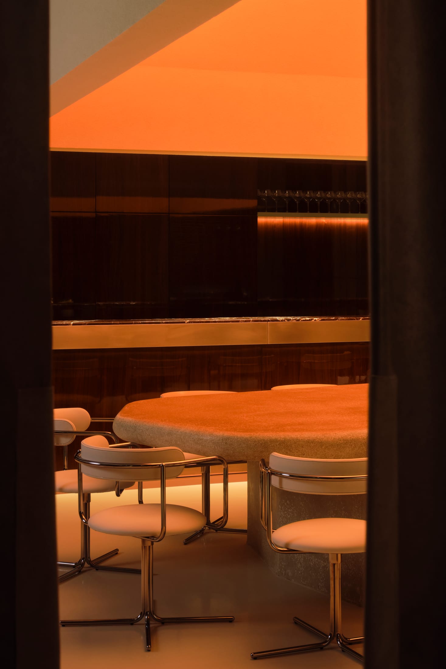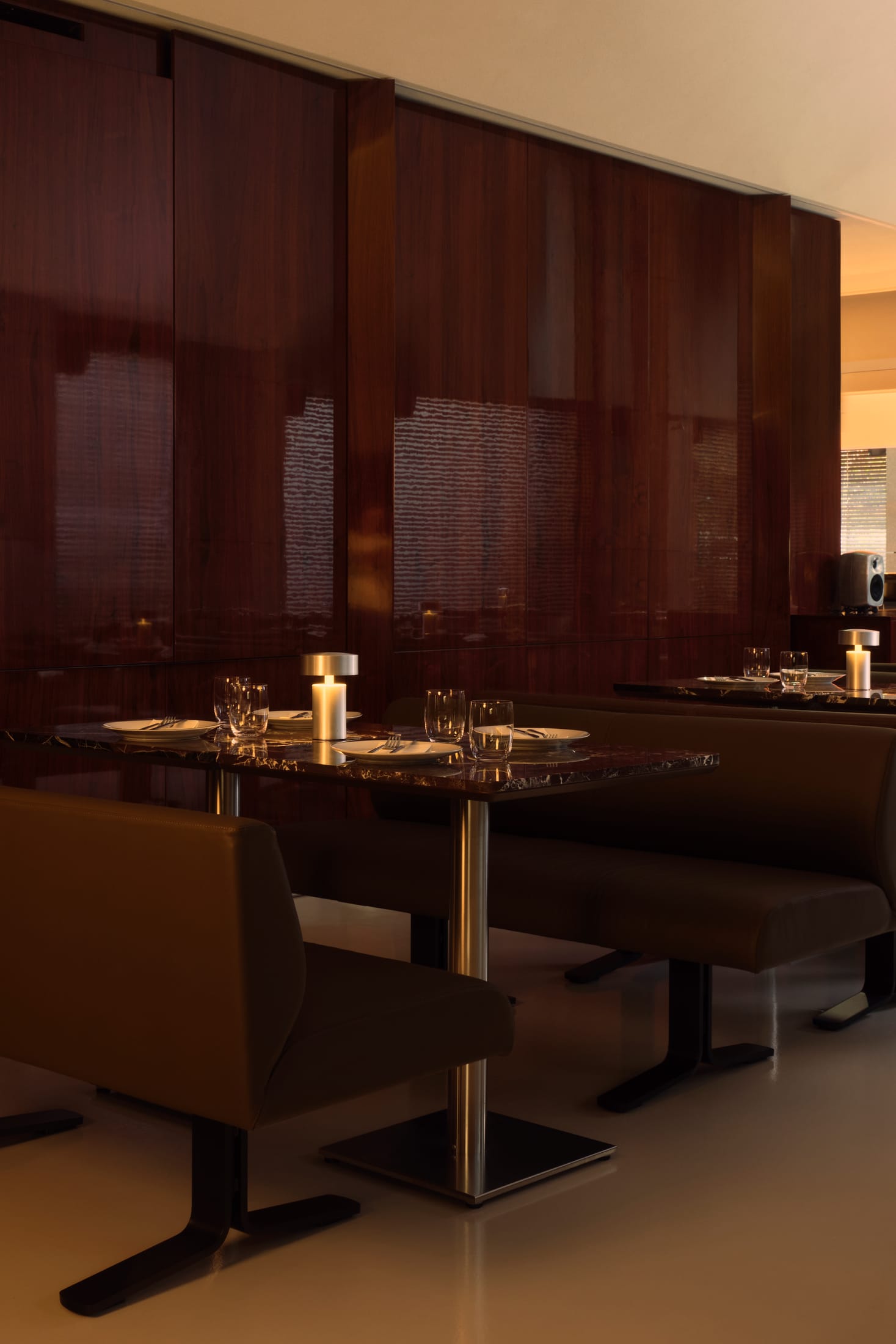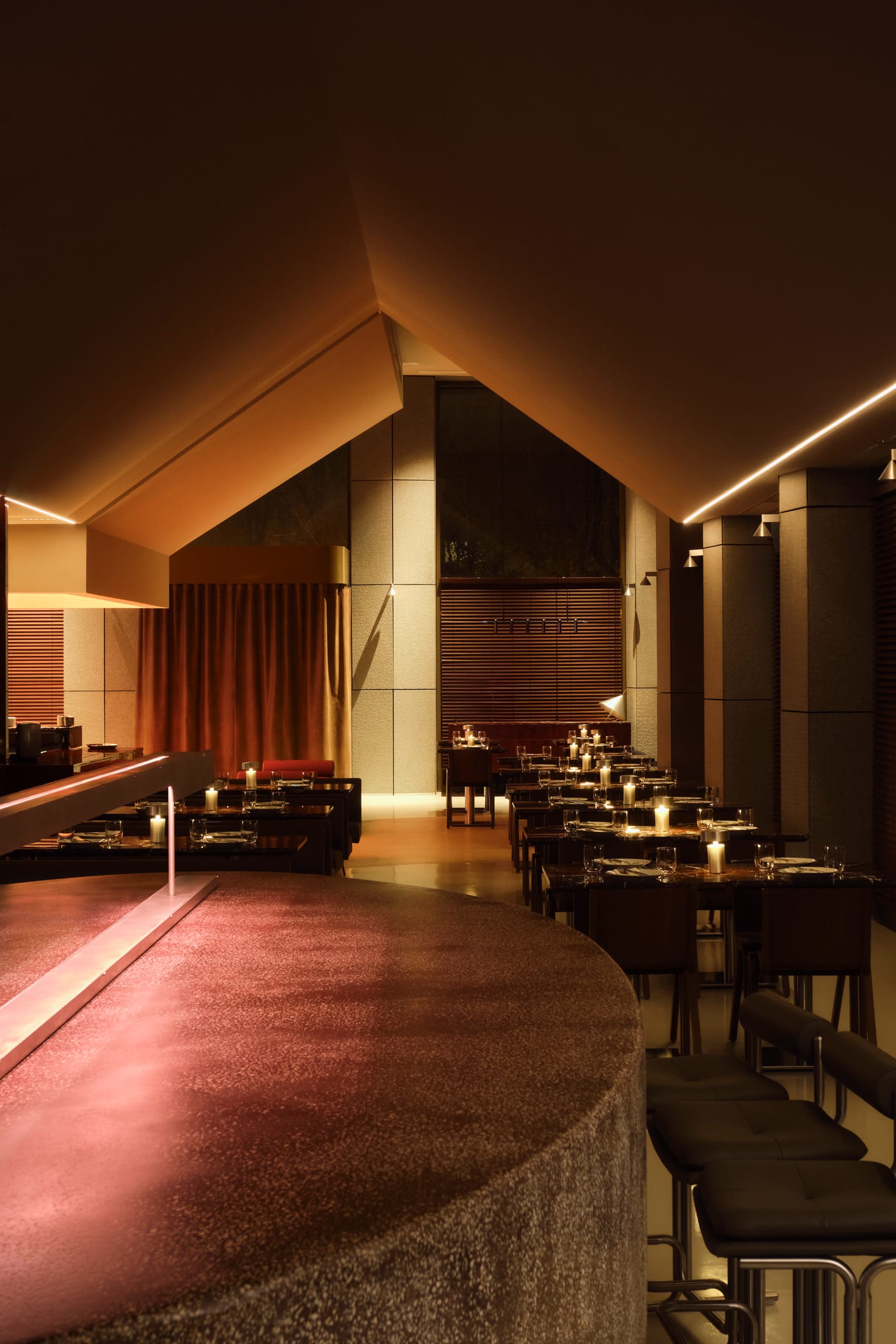 Bucharest’s newest dining destination sits on the ground floor of the Milló office building in the city’s historic centre—a space where Art Deco heritage meets sharp contemporary design. Architects Anda Zota and Elena Viziteu from AÉ02 have conceptualised a 498-square-metre restaurant that plays with geometry, light, and local materials to create something more sculptural than your typical dining room.The real showstopper here is the ceiling. Above the main dining table, it morphs into what the architects call a “volcano of light”—a dramatic central focal point that draws the eye upward and creates an intimate, almost theatrical atmosphere. Over at the cocktail area, the ceiling takes a different approach, with sharp slopes that open up the space for conversation and tastings.Lighting does serious work throughout Milló. LED strips run along the ceiling slopes, highlighting textures and geometry, while the volcanic centrepiece shifts colours to match different times of day—functional drama at its best.Bucharest's Communist-Era Apartment Block Becomes Romania's Coolest Music Venue.Romania's first listening bar occupies a historically significant 1960s apartment block. The design embraces original socialist features through contemporary materials: birch plywood, marble mosaic flooring, and a striking mechanical glass façade. Yellowtrace Ae02 Millo Restaurant Bucharest Photo Ollie Tomlinson 09 Opt80 Yellowtrace Ae02 Millo Restaurant Bucharest Photo Ollie Tomlinson 13 Opt80 Yellowtrace Ae02 Millo Restaurant Bucharest Photo Ollie Tomlinson 05 Opt80 Yellowtrace Ae02 Millo Restaurant Bucharest Photo Ollie Tomlinson 17 Opt80 Yellowtrace Ae02 Millo Restaurant Bucharest Photo Ollie Tomlinson 07 Opt80 Yellowtrace Ae02 Millo Restaurant Bucharest Photo Ollie Tomlinson 12 Opt80 Yellowtrace Ae02 Millo Restaurant Bucharest Photo Ollie Tomlinson 16 Opt80 Yellowtrace Ae02 Millo Restaurant Bucharest Photo Ollie Tomlinson 06 Opt80 Yellowtrace Ae02 Millo Restaurant Bucharest Photo Ollie Tomlinson 08 Opt80 Yellowtrace Ae02 Millo Restaurant Bucharest Photo Ollie Tomlinson 11 Opt80 Yellowtrace Ae02 Millo Restaurant Bucharest Photo Ollie Tomlinson 14 Opt80 Yellowtrace Ae02 Millo Restaurant Bucharest Photo Ollie Tomlinson 15 Opt80 Yellowtrace Ae02 Millo Restaurant Bucharest Photo Ollie Tomlinson 10 Opt80 Yellowtrace Ae02 Millo Restaurant Bucharest Photo Ollie Tomlinson 18 Opt80 Yellowtrace Ae02 Millo Restaurant Bucharest Photo Ollie Tomlinson 03 Opt80 Yellowtrace Ae02 Millo Restaurant Bucharest Photo Ollie Tomlinson 04 Opt80 Yellowtrace Ae02 Millo Restaurant Bucharest Photo Ollie Tomlinson 01 Opt80 Yellowtrace Ae02 Millo Restaurant Bucharest Photo Ollie Tomlinson 02 Opt80 The material palette connects directly to the building’s facade. Flooring combines microcement with cast-in-place terrazzo, echoing the geometric rhythm of the exterior columns. The central dining table, also terrazzo, anchors the space, while the cocktail table features a warm reddish pigment that plays against high-gloss wooden walls. These reflective surfaces bounce light and silhouettes around the room, adding depth.The bar brings visual punch with its stainless steel and cherry Levanto marble composition. A DJ booth hides beneath a removable wooden cover. Artist Andrei Arion created the lamp-object perched on the cocktail table, while Polish artist Piotr Drabowa designed the lighting fixtures above the sideboards—visible from the street.Bathrooms deserve their own mention. Cherry Levanto marble walls (matching the bar), sculptural sinks, and considered lighting create spaces that feel almost cinematic in their attention to detail.Milló speaks to the power of collaboration between architects and local artists to produce spaces where functionality and aesthetics work together without compromise. Every detail serves a purpose, transforming what could have been just another restaurant into something worth experiencing.Lines Between Fashion, Architecture and Performing Arts are Blurred in This Bucharest Boutique.Inspired by the intricate craftsmanship and sculptural volumes of Hohan's evening wear, the interior takes cues from the world of theatre, creating an immersive environment that blurs the lines between multiple disciplines. [Images courtesy of AÉ02. Photography by Ollie Tomlinson.] Share the love: Click to share on Facebook (Opens in new window) Facebook Click to share on X (Opens in new window) X Click to share on LinkedIn (Opens in new window) LinkedIn Click to email a link to a friend (Opens in new window) Email Click to share on Pinterest (Opens in new window) Pinterest Leave a Reply Cancel ReplyYour email address will not be published.CommentName* Email* Website Δ