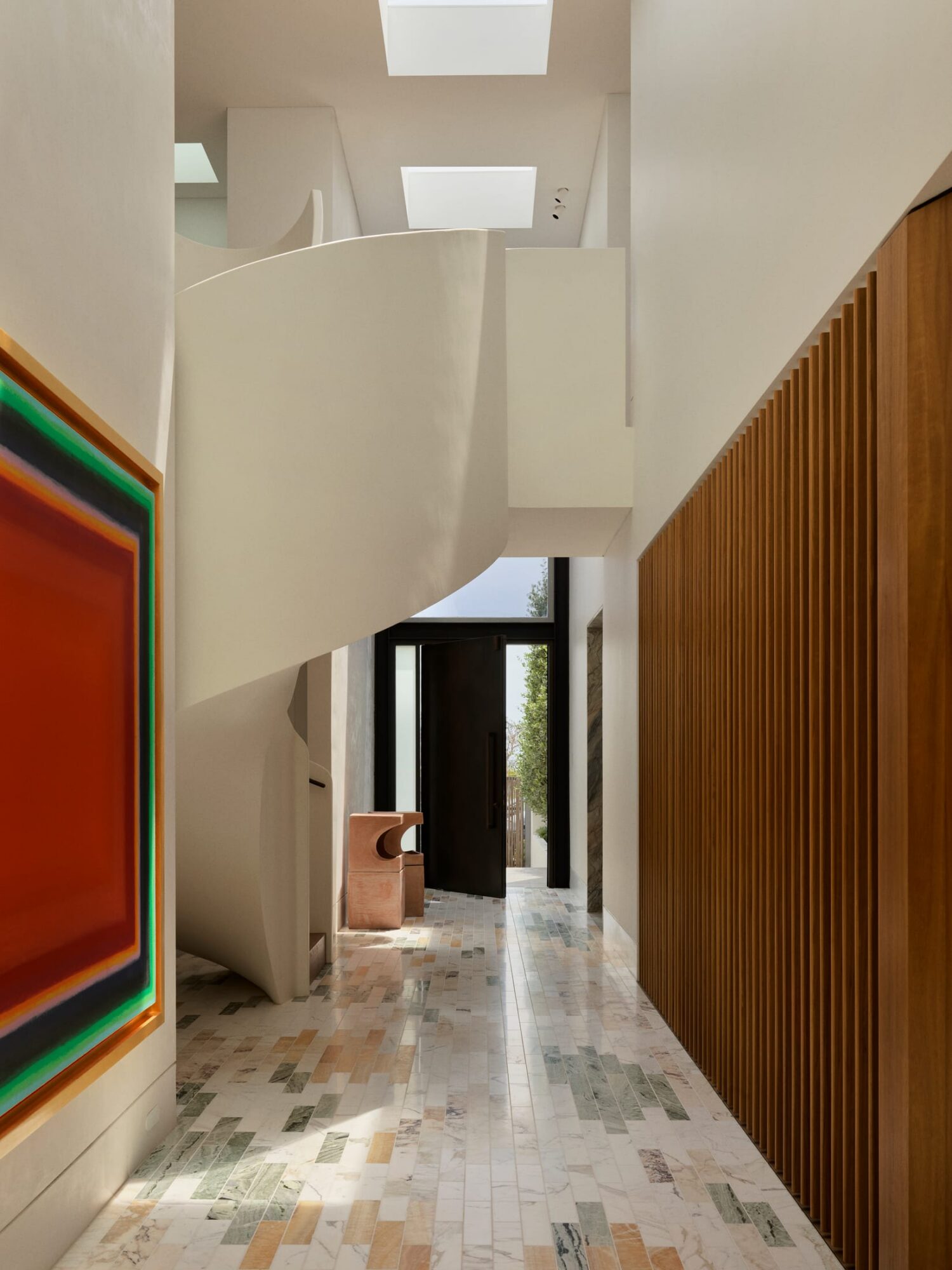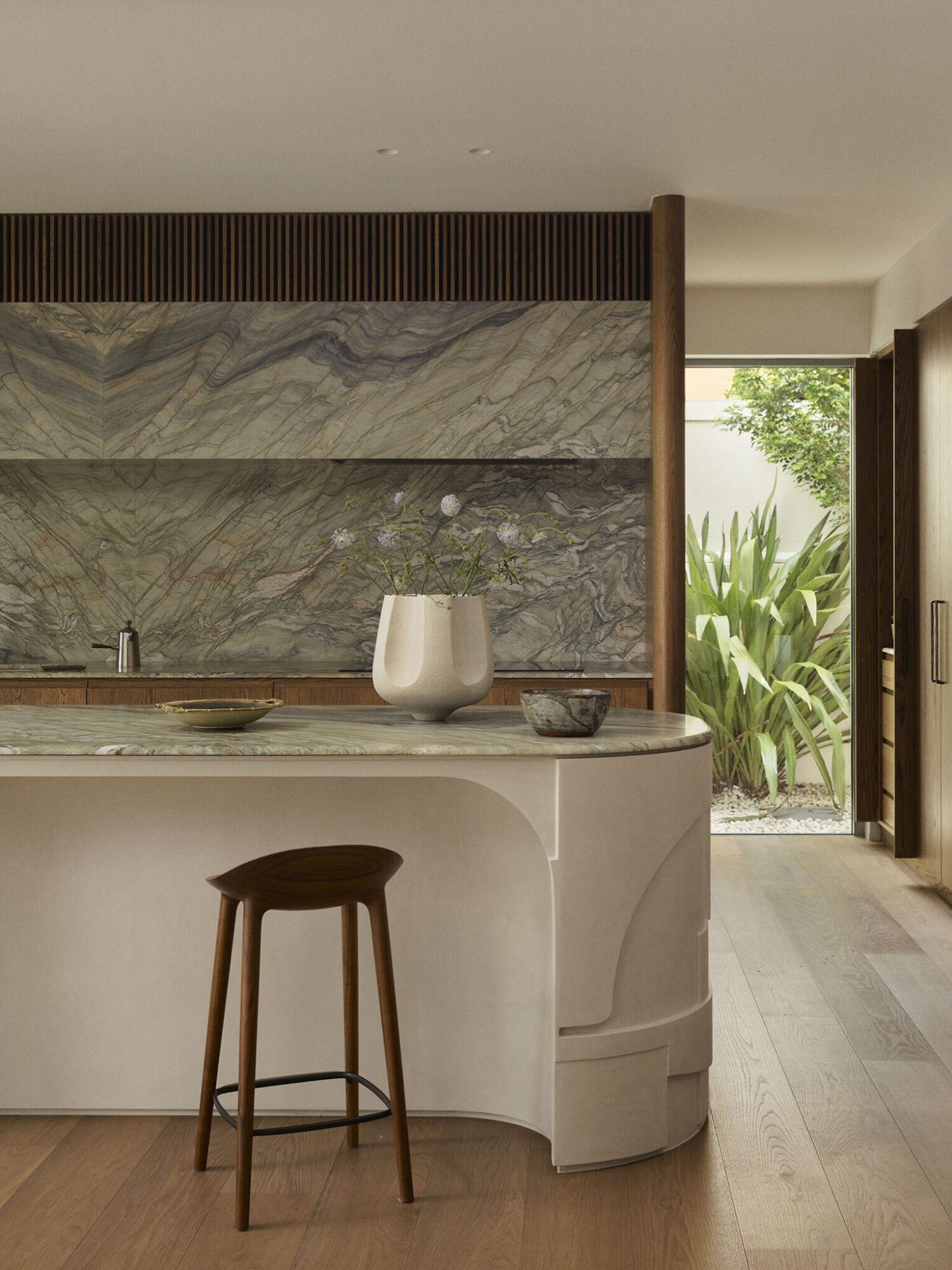 A former kit home perched atop the cliffs of Dover Heights doesn’t sound like the most glamorous starting point. But hand it to Decus, and suddenly it’s a vivacious, ocean-facing party house that practically begs you to stay for another round. Dancing on the Ceiling is the studio’s bold interior overhaul of a structurally modest dwelling in Sydney’s eastern suburbs—and the results are anything but modest.The brief, as Decus Founder and Creative Director Alexandra Donohoe Church recalls it, was refreshingly unambiguous. “They envisioned a space that felt footloose and fancy free—a place to eat, drink and be merry in razzle dazzle company.” Working with a structurally simple dwelling, Decus sought to dress the home in new clothing, layering tactility and legibility over its rigid geometry through a counterpoint of fluid forms, spatial porosity, and a rich, expressive palette sparked by an existing emerald-toned bar.The entry sets the tone immediately—a dramatic sprinkled-format stone floor nodding to the marble floors of Celine’s Mount Street boutique in London. A straight-run stair was replaced with a rendered elliptical staircase that Donohoe Church describes as “the project’s principal dancer that makes the double-height space swoon.” Beyond, a timber screen filters light into the ocean-facing living spaces, where a bespoke rippled-glass dining table paired with leopard-print chairs anchors a captivating entertaining zone that spills onto a wrap-around deck.Patchwork House: Decus Interiors Creates a Chameleon Home in Sydney's Vaucluse."The ethos is laidback but not lazy." This description by Alexandra Donohoe Church of Decus Interiors perfectly captures the studio's approach to the luxe transformation of Patchwork House in Sydney's Vaucluse. Yellowtrace Decus Dover Heights Family Home Photo Anson Smart 03 Opt80 Yellowtrace Decus Dover Heights Family Home Photo Anson Smart 06 Opt80 Yellowtrace Decus Dover Heights Family Home Photo Anson Smart 01 Opt80 Yellowtrace Decus Dover Heights Family Home Photo Anson Smart 22 Opt80 Yellowtrace Decus Dover Heights Family Home Photo Anson Smart 30 Yellowtrace Decus Dover Heights Family Home Photo Anson Smart 10 Opt80 Yellowtrace Decus Dover Heights Family Home Photo Anson Smart 02 Opt80 Yellowtrace Decus Dover Heights Family Home Photo Anson Smart 04 Opt80 Yellowtrace Decus Dover Heights Family Home Photo Anson Smart 13 Opt80 Yellowtrace Decus Dover Heights Family Home Photo Anson Smart 27 Yellowtrace Decus Dover Heights Family Home Photo Anson Smart 28 Yellowtrace Decus Dover Heights Family Home Photo Anson Smart 25 Yellowtrace Decus Dover Heights Family Home Photo Anson Smart 14 Opt80 Yellowtrace Decus Dover Heights Family Home Photo Anson Smart 05 Opt80 Yellowtrace Decus Dover Heights Family Home Photo Anson Smart 11 Opt80 Yellowtrace Decus Dover Heights Family Home Photo Anson Smart 18 Opt80 Yellowtrace Decus Dover Heights Family Home Photo Anson Smart 19 Opt80 Yellowtrace Decus Dover Heights Family Home Photo Anson Smart 07 Opt80 Yellowtrace Decus Dover Heights Family Home Photo Anson Smart 16 Opt80 Yellowtrace Decus Dover Heights Family Home Photo Anson Smart 09 Opt80 Yellowtrace Decus Dover Heights Family Home Photo Anson Smart 20 Opt80 Yellowtrace Decus Dover Heights Family Home Photo Anson Smart 21 Opt80 Yellowtrace Decus Dover Heights Family Home Photo Anson Smart 29 Yellowtrace Decus Dover Heights Family Home Photo Anson Smart 24 Opt80 Yellowtrace Decus Dover Heights Family Home Photo Anson Smart 15 Opt80 Yellowtrace Decus Dover Heights Family Home Photo Anson Smart 17 Opt80 Yellowtrace Decus Dover Heights Family Home Photo Anson Smart 26 Yellowtrace Decus Dover Heights Family Home Photo Anson Smart 23 Opt80 Yellowtrace Decus Dover Heights Family Home Photo Anson Smart 12 Opt80 Yellowtrace Decus Dover Heights Family Home Photo Anson Smart 08 Opt80 The kitchen is a study in contrasts—oak joinery and green marble wrapping around an experimental bas-relief island bench finished in Marmorino plaster, lending a sculpted, almost geological quality. Behind it, a rumpus room blends raspberry and mustard tones with retro-inspired furniture to create what Donohoe Church describes as “a ‘come hither’ vibe for the adults and a party space for the teens.”Upstairs, the private zones were significantly reconfigured into adult and kids wings, separated by the elliptical stair and double-height void. The primary suite combines a bespoke ruched leather bedhead with Calacatta Viola marble in the ensuite, addressing sunrise views across the ocean. Each child’s room was composed with equal intention—pale pink and terracotta for the daughter, ink and grey with gridded green cabinetry and prismatic glass for the son. “We composed each room to reflect the unique character of each family member,” says Donohoe Church.The result is a home that dances—as the name promises—between structure and spontaneity, refinement and revelry. It’s one of those projects where bold design instincts and genuine warmth converge.Interview: Alexandra Donohoe Church of Decus Interiors.I always knew Alex was going to do great things. We met over a decade ago while working at a leading architecture practice, and I distinctly remember her helping me pull together a concept scheme for a workplace project I was working on. She took one look at my materials and said—"It needs something else"—and proceeded to pull out a bunch of exotic velvets in exquisitely luscious colours and patterns. "But Al, this is a commercial project, my client doesn't have the budget for this $hit", I said. But she was adamant the scheme needed it. Part of me wanted to punch her in the face, and the other part—a much bigger part—knew she was 100% right. [Images courtesy of Decus. Builder: Benson Karney. Editorial styling: Joseph Gardner/Studio Gardner. Photography: Anson Smart.] Share the love: Share on Facebook (Opens in new window) Facebook Share on X (Opens