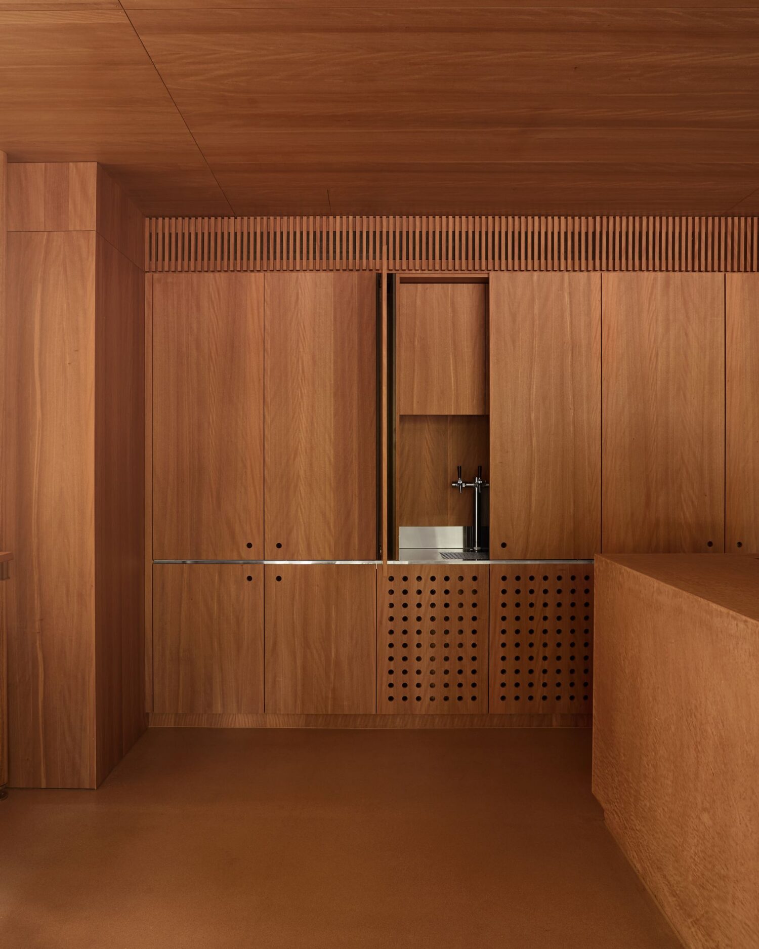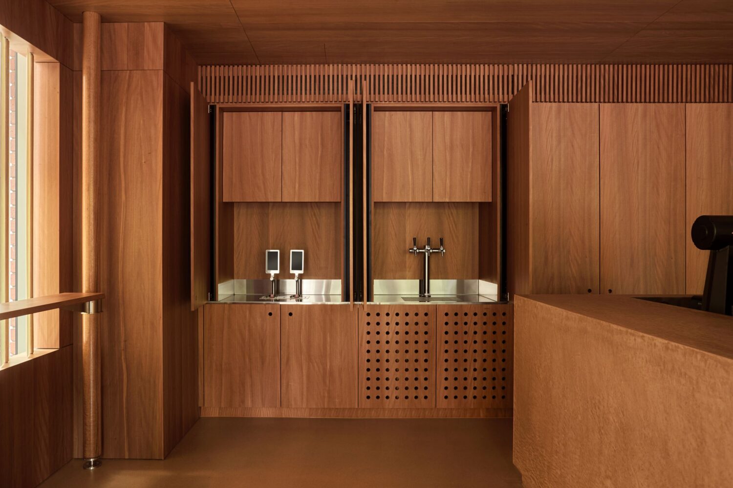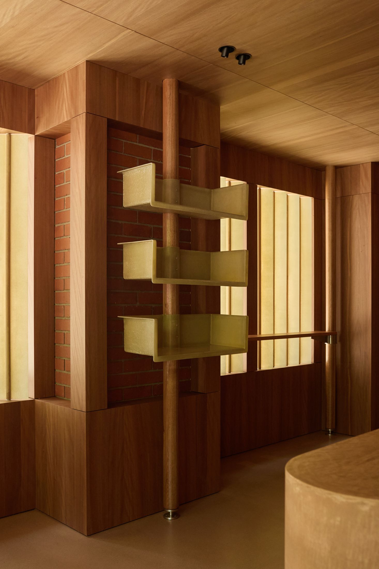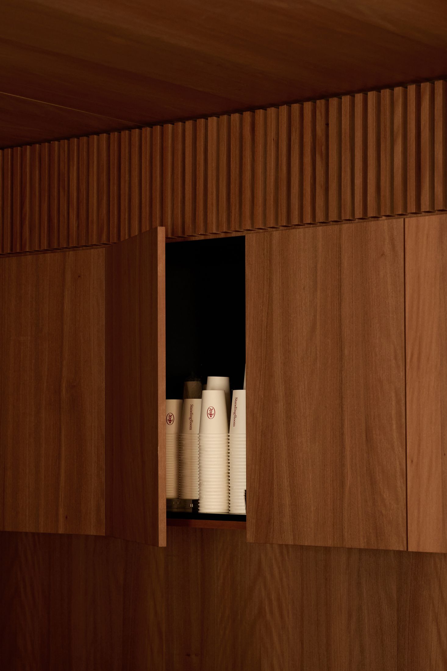 Melbourne has long had a deep, almost devotional relationship with coffee. So when a brief arrives asking to strip the ritual back to its purest form—no seats, no distractions, just the act of ordering and drinking—the design response had better be equally considered. Standing Room Coffee on Grattan Street, Carlton, is exactly that.The project is a collaboration between the Standing Room Coffee brand and one of Melbourne’s most compelling design talents, Dion Hall—a name we’ve featured on these pages more than once (see Her Melbourne, Pidapipo Laboratorio, and most recently the Szilvassy Studio at Collingwood Yards). Each time, Hall delivers something that feels precise but deeply felt—and Standing Room Coffee is no different.The brief called for a return to the origins of the espresso bar. Standing service only. A singular focus on coffee. The design needed to honour that tradition while simultaneously lifting it—operationally efficient, atmospherically warm, and visually distinctive enough to anchor future venues as a recognisable brand marker.Positioned along Grattan Street facing north toward the University of Melbourne’s historic 1888 Building, the ground-floor tenancy draws in generous natural light while maintaining an interior calm that invites lingering—even without a chair in sight. Hall resolves the L-shaped plan through orchestration of sightlines and thresholds, giving the compact volume depth and a sense of arrival.A Compact Seoul Café That Borrows the Language of the Office.The name—Quick Daily Coffee—borrows from the medical abbreviation qd (once a day), framing coffee as a ritual of productive calm. Yellowtrace Dion Hall Standing Room Cafe Melbourne Timber Lined Interior Photo Traianos Pakioufakis 01 Opt80 Yellowtrace Dion Hall Standing Room Cafe Melbourne Timber Lined Interior Photo Traianos Pakioufakis 02 Opt80 Yellowtrace Dion Hall Standing Room Cafe Melbourne Timber Lined Interior Photo Traianos Pakioufakis 03 Opt80 Yellowtrace Dion Hall Standing Room Cafe Melbourne Timber Lined Interior Photo Traianos Pakioufakis 04 Opt80 Yellowtrace Dion Hall Standing Room Cafe Melbourne Timber Lined Interior Photo Traianos Pakioufakis 05 Opt80 Yellowtrace Dion Hall Standing Room Cafe Melbourne Timber Lined Interior Photo Traianos Pakioufakis 06 Opt80 Yellowtrace Dion Hall Standing Room Cafe Melbourne Timber Lined Interior Photo Traianos Pakioufakis 07 Opt80 Yellowtrace Dion Hall Standing Room Cafe Melbourne Timber Lined Interior Photo Traianos Pakioufakis 08 Opt80 Yellowtrace Dion Hall Standing Room Cafe Melbourne Timber Lined Interior Photo Traianos Pakioufakis 09 Opt80 Yellowtrace Dion Hall Standing Room Cafe Melbourne Timber Lined Interior Photo Traianos Pakioufakis 10 Opt80 Yellowtrace Dion Hall Standing Room Cafe Melbourne Timber Lined Interior Photo Traianos Pakioufakis 11 Opt80 Yellowtrace Dion Hall Standing Room Cafe Melbourne Timber Lined Interior Photo Traianos Pakioufakis 12 Opt80 Yellowtrace Dion Hall Standing Room Cafe Melbourne Timber Lined Interior Photo Traianos Pakioufakis 13 Opt80 Yellowtrace Dion Hall Standing Room Cafe Melbourne Timber Lined Interior Photo Traianos Pakioufakis 14 Opt80 Yellowtrace Dion Hall Standing Room Cafe Melbourne Timber Lined Interior Photo Traianos Pakioufakis 15 Opt80 Yellowtrace Dion Hall Standing Room Cafe Melbourne Timber Lined Interior Photo Traianos Pakioufakis 16 Opt80 Yellowtrace Dion Hall Standing Room Cafe Melbourne Timber Lined Interior Photo Traianos Pakioufakis 17 Opt80 Yellowtrace Dion Hall Standing Room Cafe Melbourne Timber Lined Interior Photo Traianos Pakioufakis 18 Opt80 Yellowtrace Dion Hall Standing Room Cafe Melbourne Timber Lined Interior Photo Traianos Pakioufakis 19 Opt80 Yellowtrace Dion Hall Standing Room Cafe Melbourne Timber Lined Interior Photo Traianos Pakioufakis 20 Opt80 Yellowtrace Dion Hall Standing Room Cafe Melbourne Timber Lined Interior Photo Traianos Pakioufakis 21 Opt80 Yellowtrace Dion Hall Standing Room Cafe Melbourne Timber Lined Interior Photo Traianos Pakioufakis 22 Opt80 Yellowtrace Dion Hall Standing Room Cafe Melbourne Timber Lined Interior Photo Traianos Pakioufakis 23 Opt80 At the heart of the concept is an investigation into the sensory order of coffee—sight before taste. A sequence of sculptural vertical poles, timber benches and rotational shelves introduces rhythm, dimensionality and subtle movement throughout the space, counterbalancing the angular geometry of the tenancy. These poles read as instruments in the spatial composition, establishing a vocabulary intended to evolve across future Standing Room Coffee locations.Materials do the emotional heavy lifting. Brushbox timber in solid and veneer, Victorian ash, plywood, concrete and fibreglass form a palette that is warm, tactile and restrained—evoking Melbourne’s heritage of intimate, craft-driven coffee houses while cooler reflective surfaces bring lightness and contemporary edge. The result shifts gently with the seasons and time of day, which is exactly how a good local should feel.Craftsmanship is central to the project. Delivered in close collaboration with builder Dimpat, the fitout features bespoke steel brackets by engineer Dustin Bailey supporting the poles and rotational shelves—structural clarity expressed through custom making. Every element, from locally sourced timber to fibreglass louvres, has been fabricated and installed with evident care.Standing Room Coffee is conceived as a place of brief respite—a momentary pause that rewards repetition. The environment is calibrated to match the quality of the coffee it serves. Rooted in Melbourne’s cultural identity, expressed with understated modernity. That’s Dion Hall doing what he does best.Floating Canvases: Industrial Cool Meets Coffee Culture at Atelier tao+c's Blue Bottle Coffee at West Bund.Blue Bottle Coffee centres on floating ceiling planes that appear to flutter like canvases caught in river breezes, supported by angled timbe