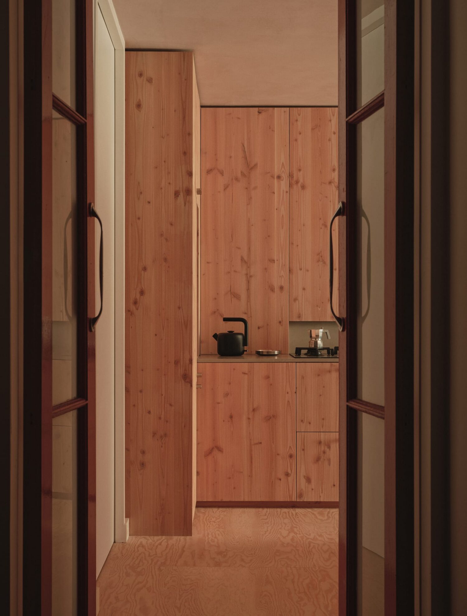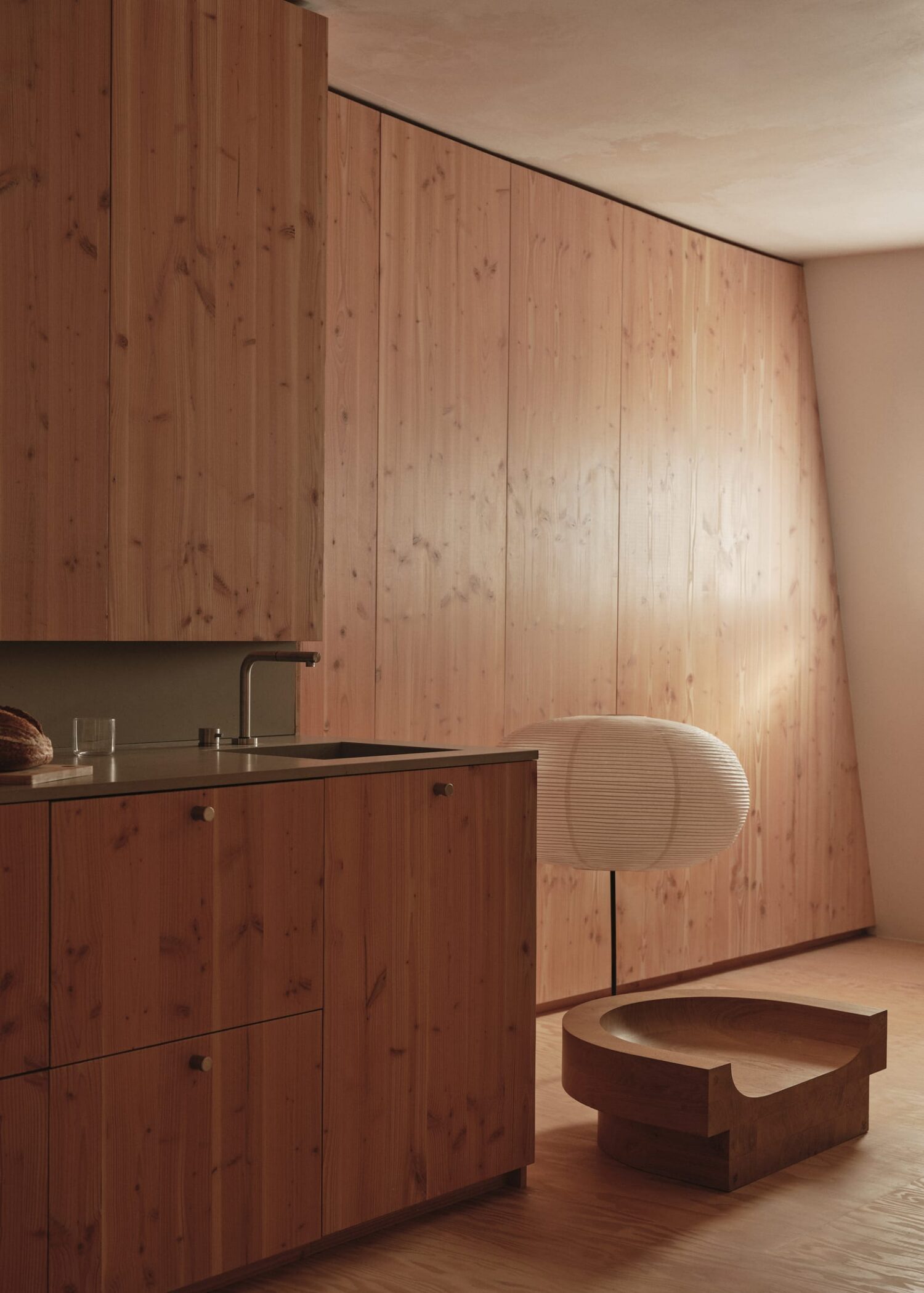 When an architect renovates their own home, things get interesting. For Benni Allan, director of London practice EBBA, his newly completed home is both a personal sanctuary and a working laboratory for ideas that might otherwise remain on the cutting room floor.The project titled Living with Timber is exactly what it suggests—an exploration of working and dwelling with this elemental material. Douglas fir dominates the space, appearing across walls, floors and joinery in a warm, consistent application that immediately sets a tone of calm and tactility. Allan used his own home to test how affordable materials can be finished and installed to actually last—useful intel for future projects.The apartment functions as a live-come-showspace, a place imagined for living around objects that constantly change. Collected pieces sit alongside works from friends and collaborators, displayed in a gallery-like setting that allows Allan to continue developing ideas and exploring how we interact with the things we own.Perfect Playlist of Light & Materiality: Space Talk Listening Bar in London by EBBA and Charlotte Taylor.At London's Space Talk, sound isn't just heard—it's seen and felt. EBBA and Charlotte Taylor have crafted a honey-toned, homely interior where acoustic engineering meets aesthetic excellence. Yellowtrace Ebba Director Benni Allan Home Timber Interior Photo Felix Speller 02 Opt80 Yellowtrace Ebba Director Benni Allan Home Timber Interior Photo Felix Speller 04 Opt80 Yellowtrace Ebba Director Benni Allan Home Timber Interior Photo Felix Speller 03 Opt80 Yellowtrace Ebba Director Benni Allan Home Timber Interior Photo Felix Speller 05 Opt80 Yellowtrace Ebba Director Benni Allan Home Timber Interior Photo Felix Speller 06 Opt80 Yellowtrace Ebba Director Benni Allan Home Timber Interior Photo Felix Speller 07 Opt80 Yellowtrace Ebba Director Benni Allan Home Timber Interior Photo Felix Speller 08 Opt80 Yellowtrace Ebba Director Benni Allan Home Timber Interior Photo Felix Speller 09 Opt80 Yellowtrace Ebba Director Benni Allan Home Timber Interior Photo Felix Speller 10 Opt80 Yellowtrace Ebba Director Benni Allan Home Timber Interior Photo Felix Speller 11 Opt80 Yellowtrace Ebba Director Benni Allan Home Timber Interior Photo Felix Speller 12 Opt80 Yellowtrace Ebba Director Benni Allan Home Timber Interior Photo Felix Speller 13 Opt80 Yellowtrace Ebba Director Benni Allan Home Timber Interior Photo Felix Speller 14 Opt80 Yellowtrace Ebba Director Benni Allan Home Timber Interior Photo Felix Speller 01 Opt80 The layout centres on a big open-plan kitchen and living area. A substantial piece of furniture conceals all kitchen workings behind large cupboards while cleverly addressing the sharp angle of the original building. This approach provides ample storage without compromising the calm brought by raw plaster surfaces and warm timber tones. The main bedroom opens to the kitchen through a full-height sliding door, allowing borrowed light to fill the space. A study connected from the corridor doubles as a making space, often filled with discarded materials awaiting their next experimental iteration.Sustainability through resourcefulness shows up everywhere. Parts of the build use reclaimed elements, including mahogany parquet rescued from another EBBA project— a mews renovation where it would have ended up in a skip.The project also let Allan chase his other interests in furniture and music. A stacked coffee table sits at the centre of the living space, part of a new collection the studio is developing. Custom speakers in douglas fir—designed with Friendly Pressure and Our Department—round things out. For now.Smart Material Moves Transform This Fragmented Madrid Apartment.Plantea Estudio transformed a fragmented 1970s Madrid apartment into a serene refuge through intelligent spatial planning and material restraint. Timber flooring extending up walls to create a nest-like embrace that unifies daily activities while maintaining distinct zones. [Images courtesy of EBBA. Photography by Felix Speller.] Share the love: Share on Facebook (Opens in new window) Facebook Share on X (Opens in new window) X Share on LinkedIn (Opens in new window) LinkedIn Email a link to a friend (Opens in new window) Email Share on Pinterest (Opens in new window) Pinterest Leave a Reply Cancel ReplyYour email address will not be published.CommentName* Email* Website Δ