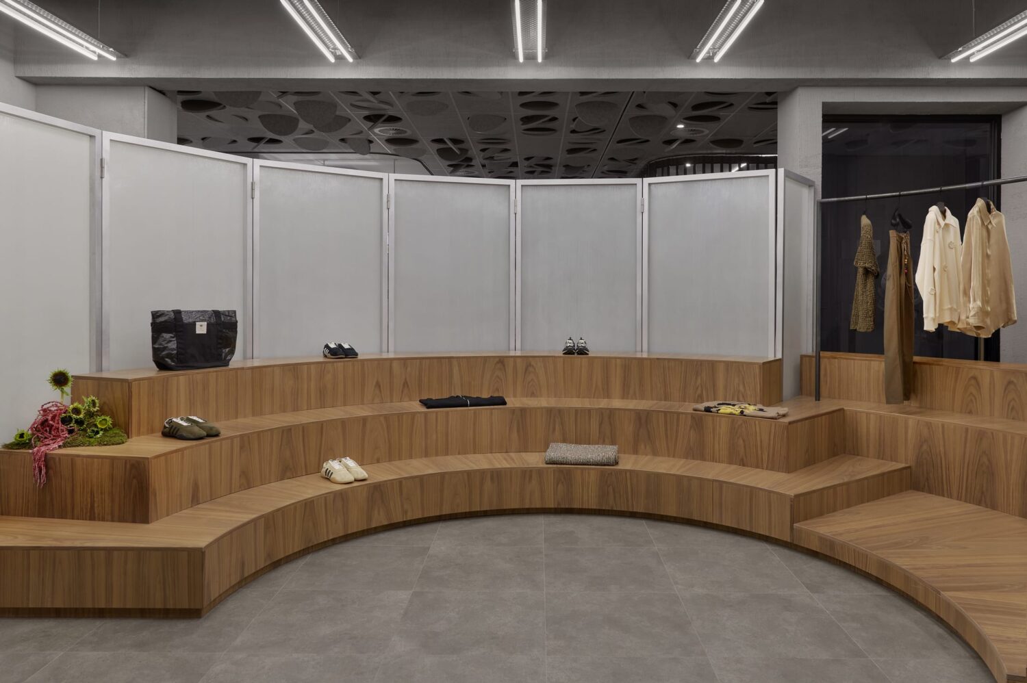 Foolscap has designed Song for the Mute’s debut Melbourne boutique as if it were a record player—and the concept works beautifully. In just 68 square metres, the space channels the energy of spinning vinyl through curved forms and a rhythmic layout.Pattern Studio’s Song for the Mute Sydney flagship remains one of our favourite retail interiors, so there’s a high bar here. Foolscap’s Melbourne interpretation takes a different approach, one that leans into the fashion label’s deep connection to music. Founders Lyna Ty and Melvin Tanaya’s openness to experimentation gave Foolscap room to push boundaries, including the bold decision to partially close off the storefront.Rather than typical retail transparency, the design creates mystique. The rectilinear shell conceals what’s inside, while a large display wall near the entrance teases the collection. At the centre, a custom-built tiered timber unit becomes the hero—its curved form mimics record grooves in a three-dimensional volume that radiates across the window. Clothing wraps around the inside of this circular module, capturing the warmth and movement of music.“We wanted the space to have presence—to feel like a stage. It’s theatrical but not intimidating. It invites people in, encourages them to explore, and hopefully feels bold enough for them to take risks, to express themselves,” explains Edouard Fenet, Senior Interior Designer at Foolscap.The Future is Now: Song for the Mute Sydney Flagship by Pattern Studio.It doesn’t take being a fashion or design buff to recognise that Pattern Studio has encapsulated something sort of remarkable at 350 George Street. Yellowtrace Foolscap Song For The Mute Melbourne Fashion Retail Photo Jack Lovel 04 Opt80 Yellowtrace Foolscap Song For The Mute Melbourne Fashion Retail Photo Jack Lovel 07 Opt80 Yellowtrace Foolscap Song For The Mute Melbourne Fashion Retail Photo Jack Lovel 05 Opt80 Yellowtrace Foolscap Song For The Mute Melbourne Fashion Retail Interiors Photo Jack Lovel 12 Opt80 Yellowtrace Foolscap Song For The Mute Melbourne Fashion Retail Interiors Photo Jack Lovel 10 Opt80 Yellowtrace Foolscap Song For The Mute Melbourne Fashion Retail Interiors Photo Jack Lovel 07 Opt80 Yellowtrace Foolscap Song For The Mute Melbourne Fashion Retail Interiors Photo Jack Lovel 06 Opt80 Yellowtrace Foolscap Song For The Mute Melbourne Fashion Retail Interiors Photo Jack Lovel 18 Opt80 Yellowtrace Foolscap Song For The Mute Melbourne Fashion Retail Photo Jack Lovel 02 Opt80 Yellowtrace Foolscap Song For The Mute Melbourne Fashion Retail Interiors Photo Jack Lovel 16 Opt80 Yellowtrace Foolscap Song For The Mute Melbourne Fashion Retail Photo Jack Lovel 01 Opt80 Yellowtrace Foolscap Song For The Mute Melbourne Fashion Retail Interiors Photo Jack Lovel 02 Opt80 The material palette balances brutalist and warm. Custom-textured cement render and a striking black window frame create a machine-like aesthetic, while walnut timber brings the warmth of old record stores. Raw steel cable trays overhead pair with linear neon lights for sculptural impact. Modernist red and green doors—inspired by Le Corbusier’s Guide to Colour—add vibrant hits against the neutral base.Within the tight floor plan, Foolscap fit two generous angular change rooms and back-of-house space. It’s a collaborative effort between Foolscap’s Melbourne and Sydney teams and local makers including Premier Displays and Chairboi.“Designing retail spaces is about crafting a setting for life. It’s not just about selling a product but inviting a moment of connection,” reflects Adele Winteridge, Founder and Principal of Foolscap. This Melbourne boutique does exactly that.A Little Bit of Magic: ANZ Gallery by Foolscap Studio.An unexpected addition to the ANZ Docklands campus, this purpose-built gallery by Foolscap Studio is a counterpoint to everyday work activities. [Images courtesy of Foolscap. Photography by Jack Lovel.] Share the love: Click to share on Facebook (Opens in new window) Facebook Click to share on X (Opens in new window) X Click to share on LinkedIn (Opens in new window) LinkedIn Click to email a link to a friend (Opens in new window) Email Click to share on Pinterest (Opens in new window) Pinterest Leave a Reply Cancel ReplyYour email address will not be published.CommentName* Email* Website Δ