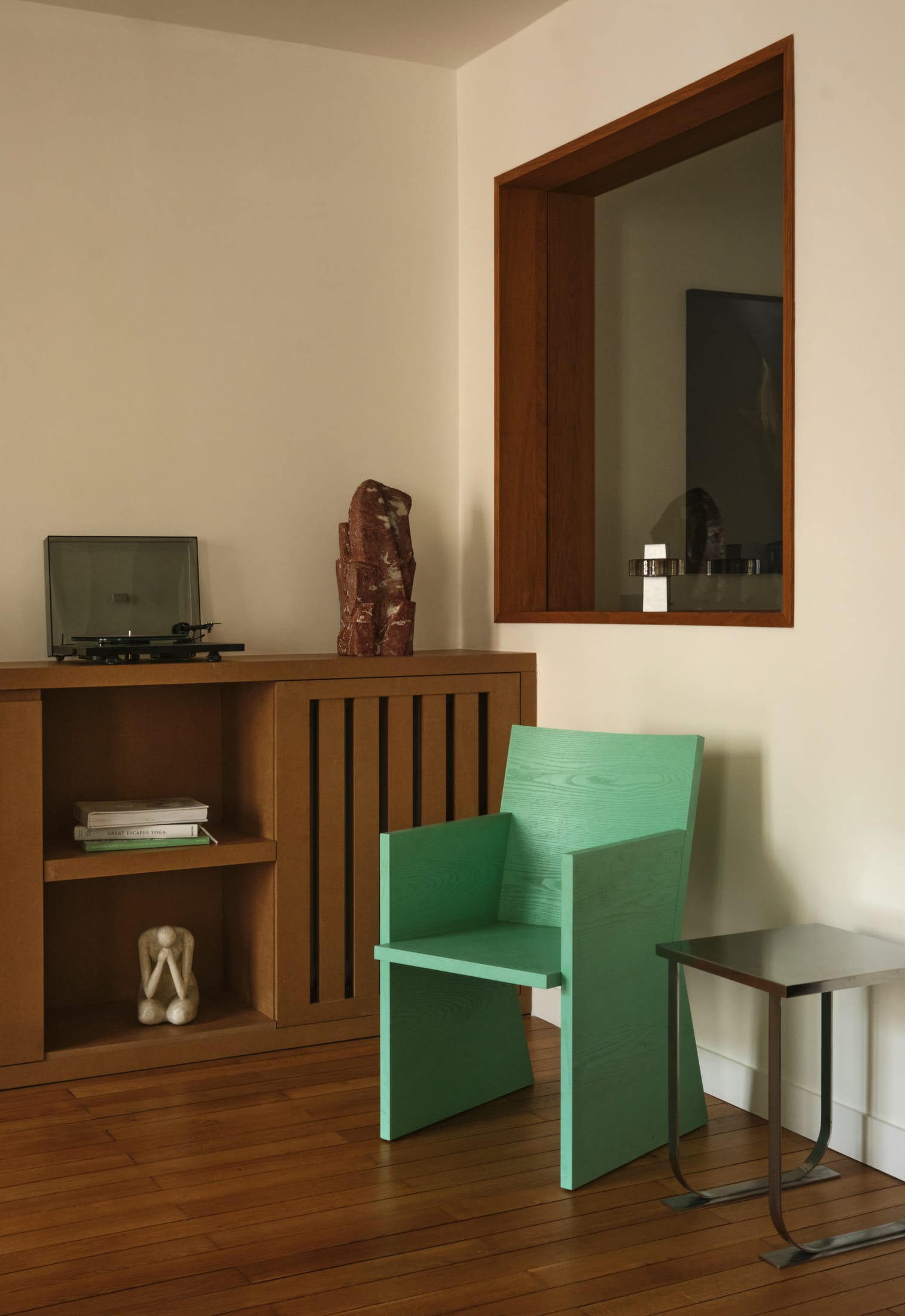 Paris duo Hauvette & Madani’s latest project is a beautifully considered apartment for a young couple with just the right touch of whimsy. Located in the Sablons neighbourhood, near Neuilly-sur-Seine, within a traditional residential building, Samantha Hauvette and Lucas Madani’s warm, textured, and undeniably sophisticated sensibility shines through.The studio has built a reputation for interiors that feel timeless rather than trendy, and this apartment delivers exactly that. Wood dominates the colour palette, giving the space a grounded, earthy quality that runs through every room.Hauvette & Madani ArchivesSee more amazing projects by Hauvette & Madani, previously featured on Yellowtrace. You're welcome! The dining area flows into the living space, anchored by a long custom storage unit and a striking artwork by Mickaël Doucet. Vintage finds from Galerie Gastou bring personality — including Ettore Sottsass chairs with names you can’t forget (“Miss, don’t you like caviar” and “In Praise of Epicurus,” the latter painted a punchy turquoise). The dining table is from the studio’s own Entremets collection.Over in the living room, Marc Held’s curvy 1967 “Culbuto” chair steals attention alongside a vintage Roger Capron coffee table. It’s got that quiet, gallery-like calm — but you’d still want to sink into that Bolia sofa with a glass of wine.The kitchen is where things get playful. A turquoise ceramic floor pairs with oak cabinetry and marble surfaces, injecting energy into an otherwise restrained palette. It’s a bold move that really lifts the space.This Parisian Apartment Renovation Reimagines Art Nouveau for Today.Contemporary art plays a crucial role in this Paris home, with works creating layers of meaning that reward closer inspection. The bedroom wraps you in tobacco tones and rich textures, framed by dramatic drapes. Wall lights and bedside tables from the studio’s Amuse Bouche collection keep things cohesive. Two bathrooms — one minimal and elegant, the other clad in sky-blue tiles — complete the private quarters.What makes this project feel special is how personal it is. Sculptures by Samantha’s mother, Yvette Hauvette, sit alongside the duo’s own furniture and lighting designs. It’s curated to the max, yes, but never cold.Bold Gestures and Classic Charm Define Rodolphe Parente's Latest Paris Interior.We've featured Rodolphe Parente extensively over the years, and this Henri Martin apartment shows exactly why we keep coming back. [Images courtesy of Hauvette & Madani. Photography by Lucas Madani.] Share the love: Click to share on Facebook (Opens in new window) Facebook Click to share on X (Opens in new window) X Click to share on LinkedIn (Opens in new window) LinkedIn Click to email a link to a friend (Opens in new window) Email Click to share on Pinterest (Opens in new window) Pinterest Leave a Reply Cancel ReplyYour email address will not be published.CommentName* Email* Website Δ
