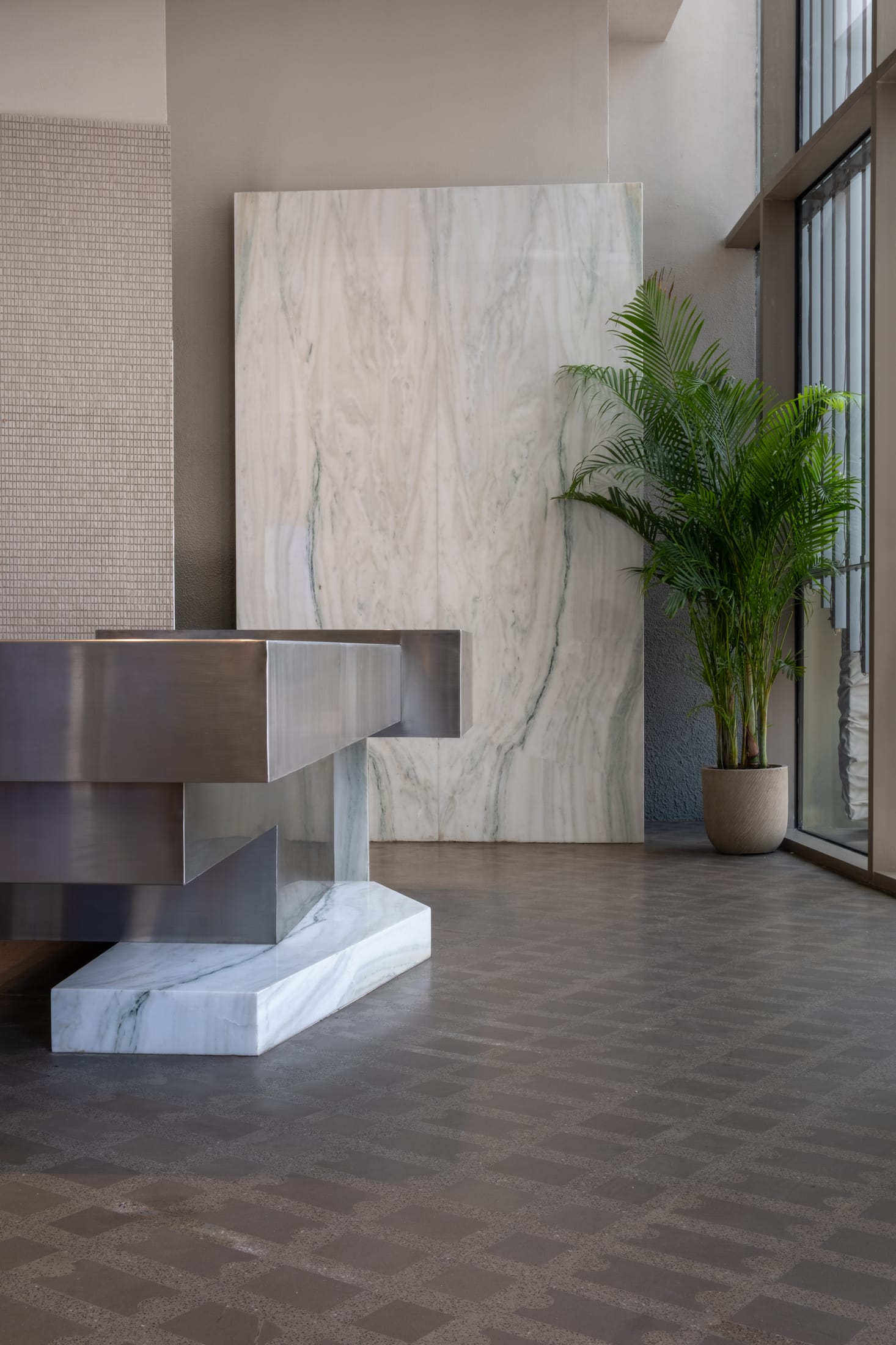 Como Lounge Café has opened its first Dubai spot, designed by Studio Dua Abukhalaf, bringing its Al Ain roots to the city in a way that feels genuinely connected to home.The interior is built around a continuous datum wall that wraps around the space. It serves as the project’s backbone, providing a backdrop for the café’s key moments. Finished in rough-textured tiles made from recycled glass and porcelain, this wall introduces tactility and depth, standing opposite to the cooler, industrial materials used elsewhere. The contrast creates a tension that works.The sculptural coffee counter is the interior’s anchor point. Its composition draws from the concept of balancing stones found in nature, with solid marble volumes supporting polished stainless steel forms in a configuration that appears both deliberate and weightless. The counter is subtly lifted off the ground, reinforcing its monolithic presence while maintaining a sense of elevation. Above it, a custom stainless steel canopy mirrors this composition, softly reflecting light and movement, creating a push-pull between weight and lightness.Custom elements define the space’s character. The floor features a site-specific design that combines cut stone with cast terrazzo, creating patterns that align with the interior’s spatial rhythm. Material transitions are handled with precision—the recycled tile walls provide texture, while muted floor tones ground the palette. Timber accents in the seating balance against stainless steel tables, establishing an equilibrium between warmth and industrial coolness.Floating Canvases: Industrial Cool Meets Coffee Culture at Atelier tao+c's Blue Bottle Coffee at West Bund.Blue Bottle Coffee centres on floating ceiling planes that appear to flutter like canvases caught in river breezes, supported by angled timber columns. Yellowtrace S Da Como Lounge Cafe Dubai Photo Aylul Studio 14 Opt80 Yellowtrace S Da Como Lounge Cafe Dubai Photo Aylul Studio 18 Opt80 Yellowtrace S Da Como Lounge Cafe Dubai Photo Aylul Studio 09 Opt80 Yellowtrace S Da Como Lounge Cafe Dubai Photo Aylul Studio 17 Opt80 Yellowtrace S Da Como Lounge Cafe Dubai Photo Aylul Studio 16 Opt80 Yellowtrace S Da Como Lounge Cafe Dubai Photo Aylul Studio 07 Opt80 Yellowtrace S Da Como Lounge Cafe Dubai Photo Aylul Studio 02 Opt80 Yellowtrace The Datum Wall 04 Opt80 Yellowtrace Balance In Nature 03 Opt80 Yellowtrace S Da Como Lounge Cafe Dubai Photo Aylul Studio 22 Opt80 Yellowtrace S Da Como Lounge Cafe Dubai Photo Aylul Studio 27 Opt80 Yellowtrace S Da Como Lounge Cafe Dubai Photo Aylul Studio 26 Opt80 Yellowtrace S Da Como Lounge Cafe Dubai Photo Aylul Studio 19 Opt80 Yellowtrace S Da Como Lounge Cafe Dubai Photo Aylul Studio 15 Opt80 Yellowtrace S Da Como Lounge Cafe Dubai Photo Aylul Studio 13 Opt80 Yellowtrace S Da Como Lounge Cafe Dubai Photo Aylul Studio 03 Opt80 Yellowtrace S Da Como Lounge Cafe Dubai Photo Aylul Studio 08 Opt80 Yellowtrace S Da Como Lounge Cafe Dubai Photo Aylul Studio 20 Opt80 Yellowtrace S Da Como Lounge Cafe Dubai Photo Aylul Studio 12 Opt80 Yellowtrace S Da Como Lounge Cafe Dubai Photo Aylul Studio 10 Opt80 Yellowtrace S Da Como Lounge Cafe Dubai Photo Aylul Studio 11 Opt80 Yellowtrace S Da Como Lounge Cafe Dubai Photo Aylul Studio 23 Opt80 Yellowtrace S Da Como Lounge Cafe Dubai Photo Aylul Studio 24 Opt80 Yellowtrace S Da Como Lounge Cafe Dubai Photo Aylul Studio 25 Opt80 Yellowtrace S Da Como Lounge Cafe Dubai Photo Aylul Studio 21 Opt80 Yellowtrace S Da Como Lounge Cafe Dubai Photo Aylul Studio 28 Opt80 Yellowtrace S Da Como Lounge Cafe Dubai Photo Aylul Studio 29 Opt80 Yellowtrace Como Lounge Section 02 Opt80 Yellowtrace Como Lounge Layout 01 Opt80 The material choices reflect a considered approach to sustainability without making it the headline. Recycled glass and porcelain tiles, natural stone, and terrazzo exemplify durability and longevity—the kind of design thinking that prioritises permanence over fleeting trends.What makes this café work is its restraint. Rather than overplaying the Al Ain landscape reference, the design abstracts it into textures, forms, and material contrasts that feel contemporary and contextual to Dubai’s urban environment. This calm, cohesive space honours its origins while carving out its own identity in a competitive market.With Como Lounge Café, Studio Dua Abukhalaf demonstrates that a strong design concept doesn’t need to shout. Sometimes, it’s the careful layering of materials, the precision of custom details, and the confidence to let quality speak for itself that creates memorable spaces. This Editorial Placement has been vetted to align with Yellowtrace’s stringent selection criteria. The modest contribution we receive for these placements aids in our ongoing commitment to delivering exceptional quality content. For more information or to submit your project for consideration, head to our contact page.Brutalist Beauty Meets Japanese Philosophy at Otaku Al Qana.This waterfront cafe merges brutalist forms with wabi-sabi philosophy, creating an evolving space where raw materials and refined details coexist. [Images courtesy of Studio Dua Abukhalaf. Photography by Aylul Studio.] Share the love: Click to share on Facebook (Opens in new window) Facebook Click to share on X (Opens in new window) X Click to share on LinkedIn (Opens in new window) LinkedIn Click to email a link to a friend (Opens in new window) Email Click to share on Pinterest (Opens in new window) Pinterest Leave a Reply Cancel ReplyYour email address will not be published.CommentName* Email* Website Δ