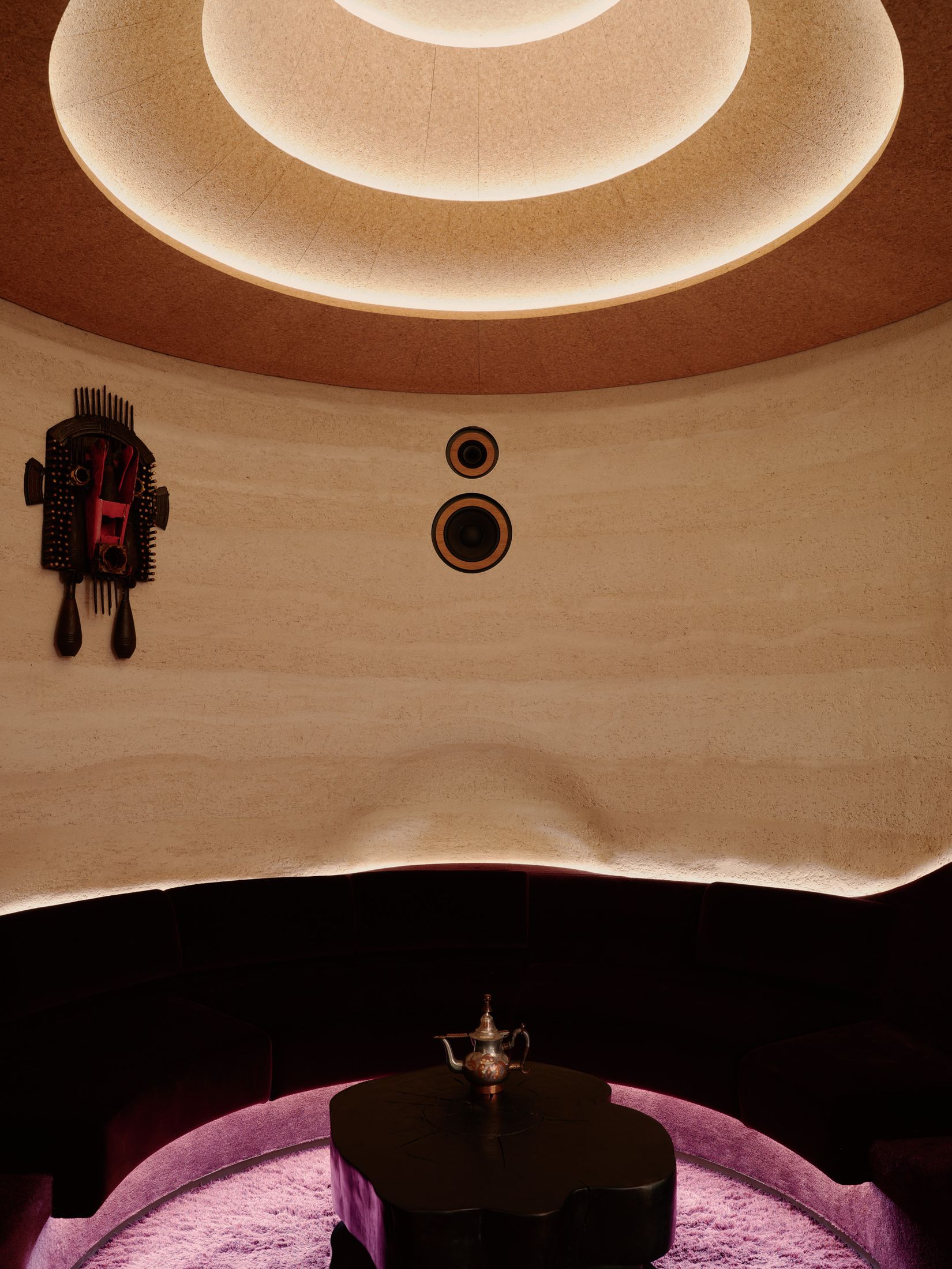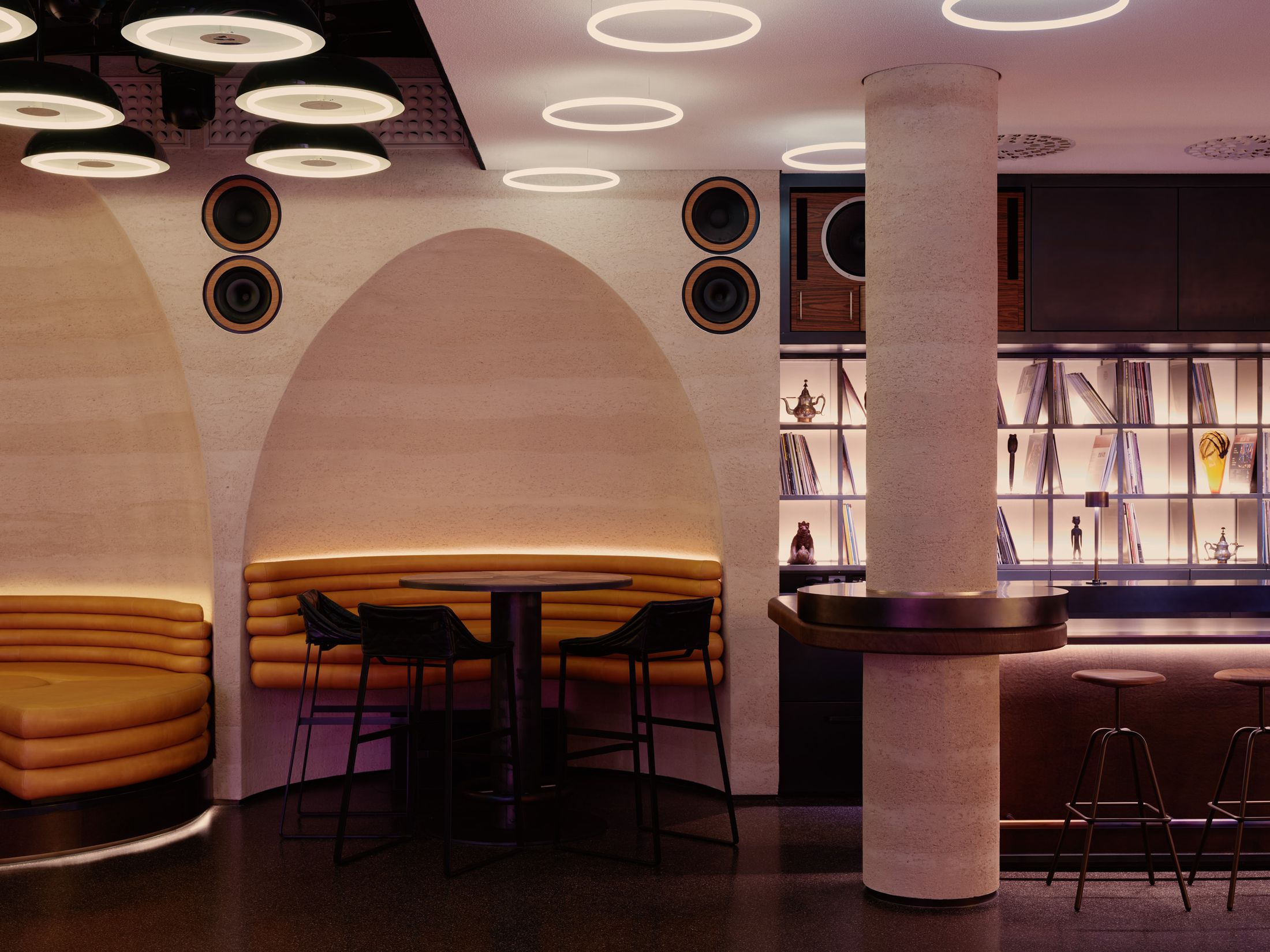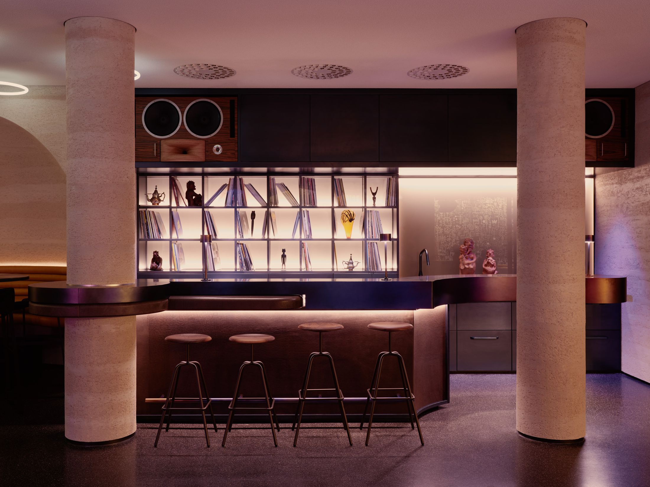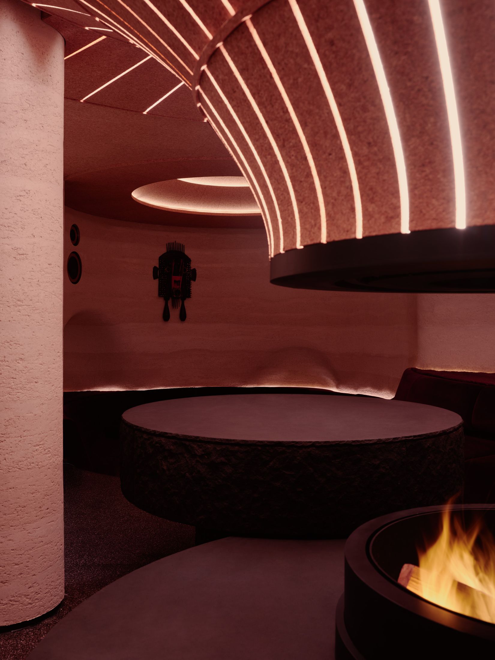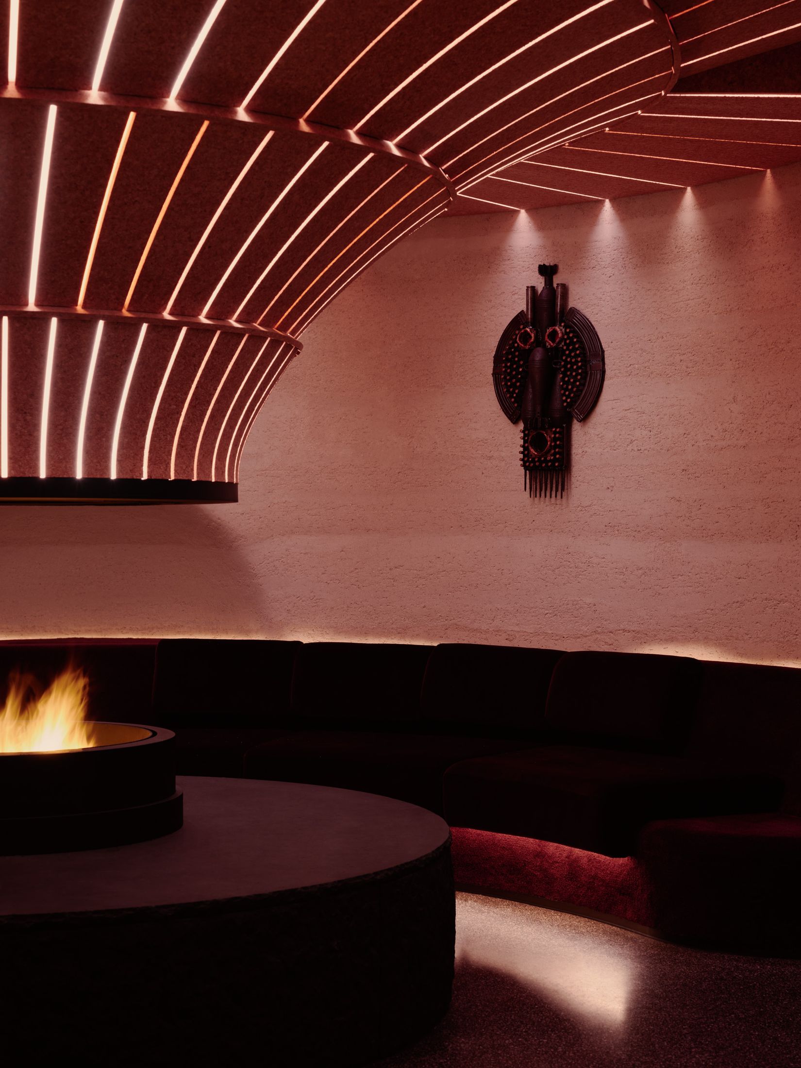 By now, Studio Karhard has demonstrated a rare and consistent ability to carry its club DNA into almost any spatial typology without losing the plot. We’ve seen it in a nightclub-inspired Berlin apartment and a dentist practice stripped of every clinical cliché. Now, the Berlin-based studio founded by Alexandra Erhard and Thomas Karsten has transported that same energy—raw, precise, emotionally charged—to the Swiss Alps.Play is a 300-square-metre club space embedded within Chalet African, an extraordinary private chalet in Gstaad conceived by creative director Nachson Mimran and Pritzker Prize–winning architect Francis Kéré. The chalet unfolds across three thematic zones—Regenerate, Think, and Play—each shaped by a different cast of collaborators. Studio Karhard was handed the most kinetic of the three: a hybrid club landscape complete with dancefloor, DJ booth, bar, fireplace lounge, bowling alley, and billiard table.Perfect Playlist of Light & Materiality: Space Talk Listening Bar in London.At Space Talk listening bar, sound isn't just heard—it's seen and felt. EBBA and Charlotte Taylor have crafted a honey-toned, homely interior where acoustic engineering meets aesthetic excellence. What makes Play interesting is its framing. Studio Karhard describes the space not as a private disco but as “a spatial infrastructure for collective experience”—a nocturnal laboratory where architecture, light, and sound operate as a single mutable instrument. The brief demanded flexibility across a wide spectrum: surround-sound cinema screenings, intimate listening sessions, and full club nights with a high-performance sound system. Rather than designing for a fixed scenario, the studio orchestrated a field of tension between intimacy and excess that can be dialled up or down depending on the occasion.Materiality is doing a lot of heavy lifting here. Club-tested surfaces—robust, tactile, built to withstand—sit alongside islands of precision lighting and graphic accents that reference African art and ornamentation without tipping into pastiche. The alpine shell of the chalet is deliberately subverted from within; in place of rustic timber and folksy clichés, a contemporary, Afro-futurist atmosphere emerges. The stacked leather benches wrapping the dancefloor, the dark checkerboard tiles of the DJ booth, the constellation of circular pendant lamps overhead—these elements read as both technoid and warm, which is exactly the kind of contradiction Studio Karhard does best.Volcanic Volumes: Gota in Madrid by Plantea Estudio.Madrid’s Justicia barrio is a glittering tapestry of swish boutiques, neoclassical buildings, nightclubs, bistros and tapas bars, of which most are remarkably modern in design. Plantea Estudio’s latest project is the exception. The artwork woven through Play is equally considered. The DJ booth is the work of designer Ousmane Mbaye, a wall painting in the bowling alley by Victor Ekpuk, and a pendant lamp in the staircase by Ini Archibong—all artists with African backgrounds, reinforcing the cross-continental dialogue that runs through the entire Chalet African project.What Studio Karhard keeps proving with each new project is that genuine creative range isn’t about adapting a signature aesthetic to different briefs. It’s about reading each context with precision and building something that couldn’t exist anywhere else.Tucked inside a Kéré-designed chalet in the Swiss Alps, Play is about as far from Berghain as it gets. And yet the intelligence is unmistakable.Bonnie Bar & Restaurant in Paris by Jordane Arrivetz.There is a bit of Studio 54 in this Parisian temple of the night where the evenings promise to be as stunning as the view. [Images courtesy of Studio Karhard. Interior Design by Studio Karhard (Alexandra Erhard & Thomas Karsten) with Jannick Naumann, Anna Liu, and Valeriya Sidorenko. Soundsystem by H.A.N.D. Light programming by Room Division. Photography by Robert Rieger.] Share the love: Share on Facebook (Opens in new window) Facebook Share on X (Opens in new window) X Share on LinkedIn (Opens in new window) LinkedIn Email a link to a friend (Opens in new window) Email Share on Pinterest (Opens in new window) Pinterest Leave a Reply Cancel ReplyYour email address will not be published.CommentName* Email* Website Δ