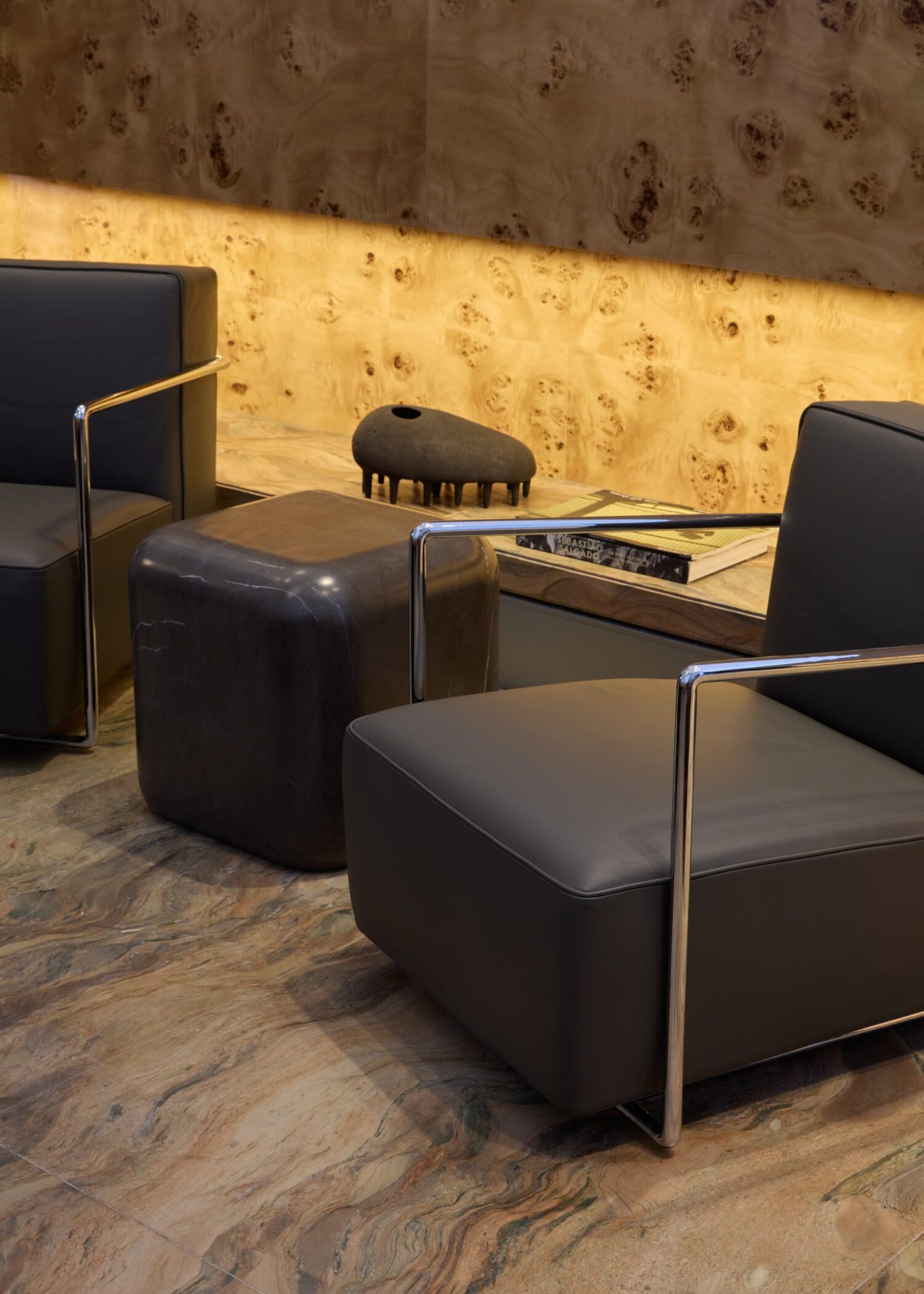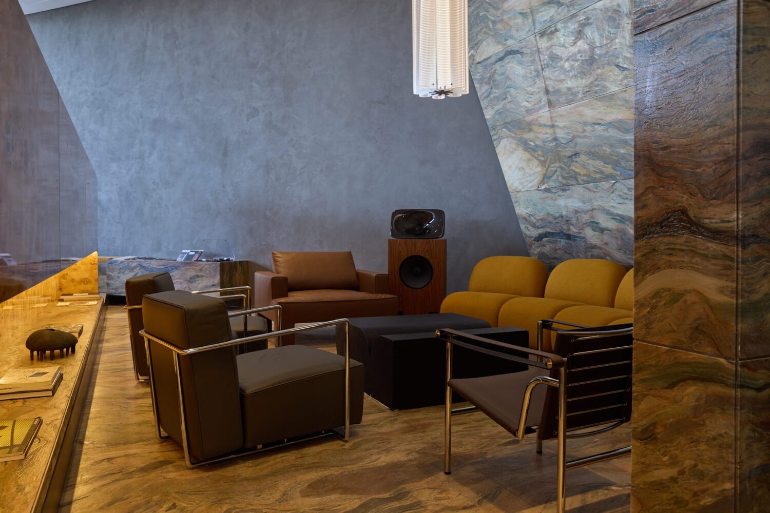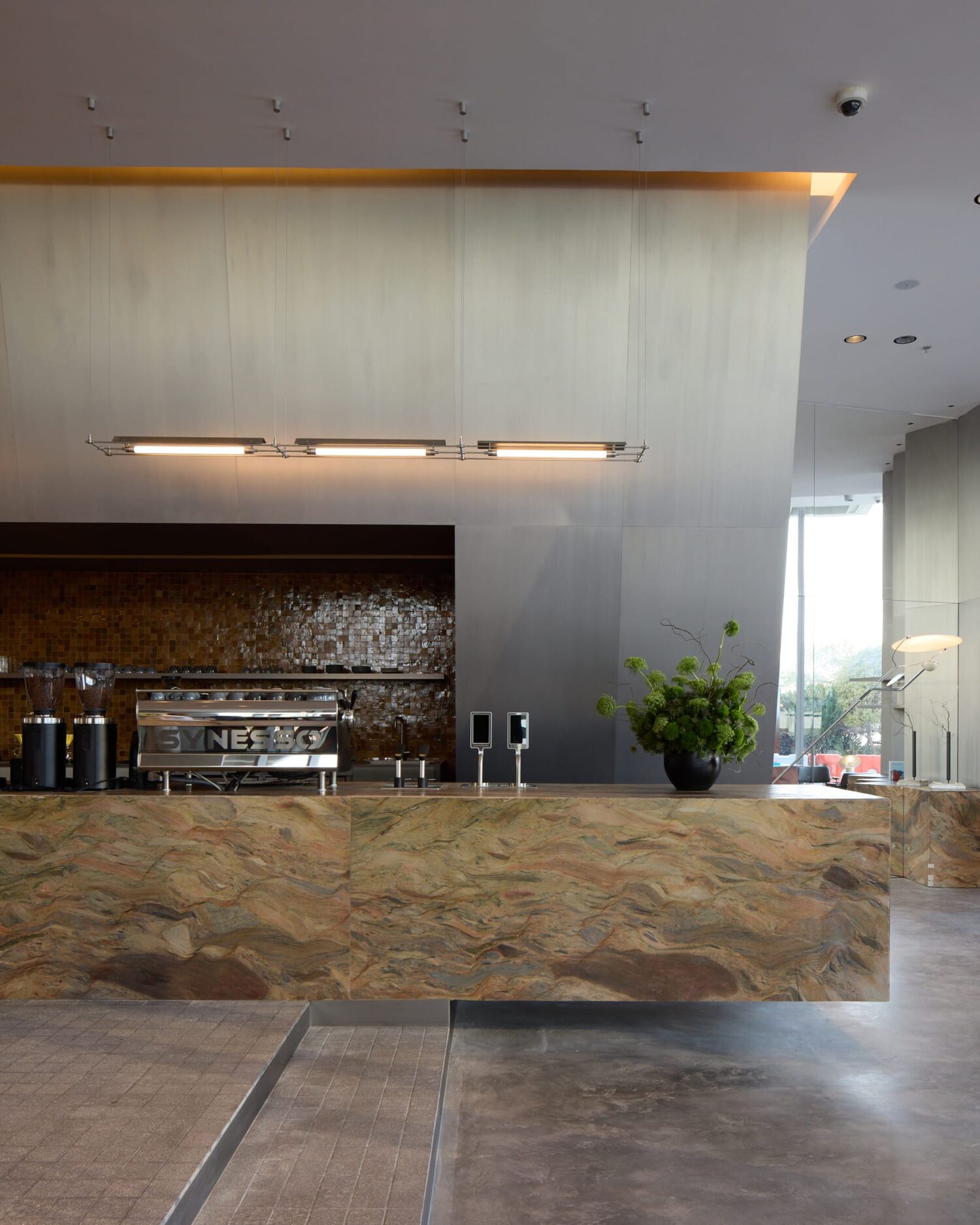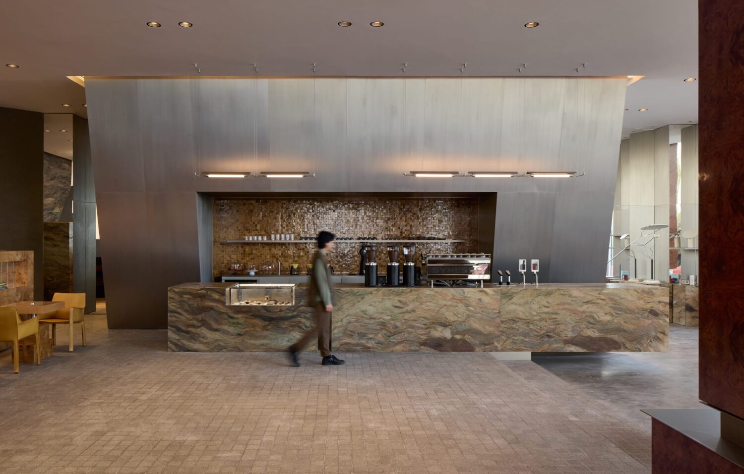 Dubai studio Styled Habitat has unveiled a sophisticated café concept for Abu Dhabi’s Al Maryah Island, approaching coffee culture through a high-design lens. Daily Press occupies a prominent position along the waterfront promenade, designed as a gathering place for the city’s creative and professional community.The 60s and 70s modernist public spaces provided the conceptual foundation, filtered through a contemporary Middle Eastern context. The studio established a geometric grid that extends from the existing coffered metal ceiling canopy through to the quarry-tiled floors and zellige-tiled back wall. This rigorous framework creates visual continuity between exterior and interior while allowing for spatial drama.The layout breaks convention by shifting diagonally from the main facade, generating unexpected sightlines and perspective shifts throughout the space. At the centre sits a cantilevered stone island bar backed by a deliberately angled brushed steel wall. The handmade zellige tile introduces an irregular, handcrafted rhythm that plays against the precision of the grid. Mirrored and steel retail walls with angled alcoves frame the perimeter, displaying curated merchandise and objects.Brutalist Beauty Meets Japanese Philosophy at Otaku Al Qana.This waterfront cafe by Shell+Core merges brutalist forms with wabi-sabi philosophy, creating an evolving space where raw materials and refined details coexist. Yellowtrace Styled Habitat Daily Press Cafe Abu Dhabi Photo Oculis Project 08 Opt80 Yellowtrace Styled Habitat Daily Press Cafe Abu Dhabi Photo Oculis Project 06 Opt80 Yellowtrace Styled Habitat Daily Press Cafe Abu Dhabi Photo Oculis Project 14 Opt80 Yellowtrace Styled Habitat Daily Press Cafe Abu Dhabi Photo Oculis Project 01 Opt80 Yellowtrace Styled Habitat Daily Press Cafe Abu Dhabi Photo Oculis Project 03 Opt80 Yellowtrace Styled Habitat Daily Press Cafe Abu Dhabi Photo Oculis Project 02 Opt80 Yellowtrace Styled Habitat Daily Press Cafe Abu Dhabi Photo Oculis Project 04 Opt80 Yellowtrace Styled Habitat Daily Press Cafe Abu Dhabi Photo Oculis Project 05 Opt80 Yellowtrace Styled Habitat Daily Press Cafe Abu Dhabi Photo Oculis Project 07 Opt80 Yellowtrace Styled Habitat Daily Press Cafe Abu Dhabi Photo Oculis Project 09 Opt80 Yellowtrace Styled Habitat Daily Press Cafe Abu Dhabi Photo Oculis Project 10 Opt80 Yellowtrace Styled Habitat Daily Press Cafe Abu Dhabi Photo Oculis Project 11 Opt80 Yellowtrace Styled Habitat Daily Press Cafe Abu Dhabi Photo Oculis Project 13 Opt80 Yellowtrace Styled Habitat Daily Press Cafe Abu Dhabi Photo Oculis Project 15 Opt80 Yellowtrace Styled Habitat Daily Press Cafe Abu Dhabi Photo Oculis Project 16 Opt80 Yellowtrace Styled Habitat Daily Press Cafe Abu Dhabi Photo Oculis Project 17 Opt80 Yellowtrace Styled Habitat Daily Press Cafe Abu Dhabi Photo Oculis Project 18 Opt80 Yellowtrace Styled Habitat Daily Press Cafe Abu Dhabi Photo Oculis Project 19 Opt80 Yellowtrace Styled Habitat Daily Press Cafe Abu Dhabi Photo Oculis Project 20 Opt80 Yellowtrace Styled Habitat Daily Press Cafe Abu Dhabi Photo Oculis Project 21 Opt80 Yellowtrace Styled Habitat Daily Press Cafe Abu Dhabi Photo Oculis Project 22 Opt80 Yellowtrace Styled Habitat Daily Press Cafe Abu Dhabi Photo Oculis Project 23 Opt80 Yellowtrace Styled Habitat Daily Press Cafe Abu Dhabi Photo Oculis Project 12 Opt80 Materials deliver texture and weight. Brushed steel surfaces catch and reflect light, richly veined marble provides visual anchor points, and knotty burl veneers add warmth to the material palette. The interplay between wood, stone, glass, and steel creates a layered environment that feels both refined and approachable.Styled Habitat programmed the space to accommodate different modes of use. A communal table and lounge seating support collaborative work, while the central bar area with surrounding dining tables serves the social crowd. A quieter lounge zone features sofas, armchairs, curated artworks, and a record player for extended stays.The furniture selection draws from established modernist and contemporary pieces. Jean Prouvé’s Standard Chair and Fauteuil Direction anchor the space alongside work by Le Corbusier, Mario Bellini’s Cab 413 Chair, and pieces from Tacchini and Flexform. Lighting includes Volker Haug X Flack Studio’s Bruce wall sconces and Mario Tsai’s Bloom and Mazha chandeliers.The Daily Press positions itself as a cultural hub, striking a balance between aesthetic ambition and the practical needs of daily use.VSHD Design Makes Pizza-Making the Star at Memphis-Inspired Moonslice.The two-level design flows from street-facing seating to elevated dining, wrapped in Ettore Sottsass-influenced veneers, graphic vinyl floors, and custom Pollock-inspired fabrics by Venezuelan artist Fernanda Mogna. [Images courtesy of Styled Habitat. Photography by Oculis Project.] Share the love: Share on Facebook (Opens in new window) Facebook Share on X (Opens in new window) X Share on LinkedIn (Opens in new window) LinkedIn Email a link to a friend (Opens in new window) Email Share on Pinterest (Opens in new window) Pinterest Leave a Reply Cancel ReplyYour email address will not be published.CommentName* Email* Website Δ