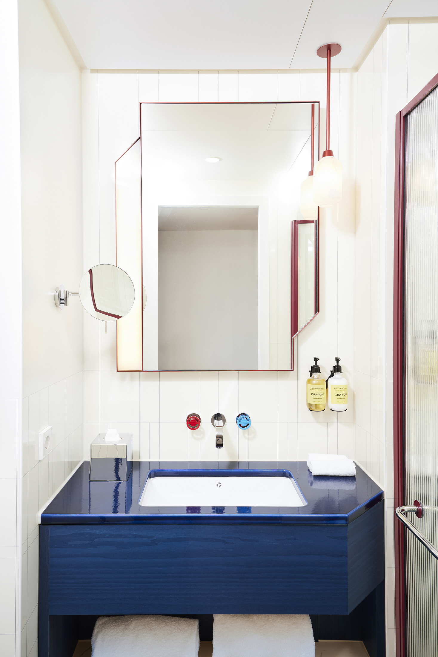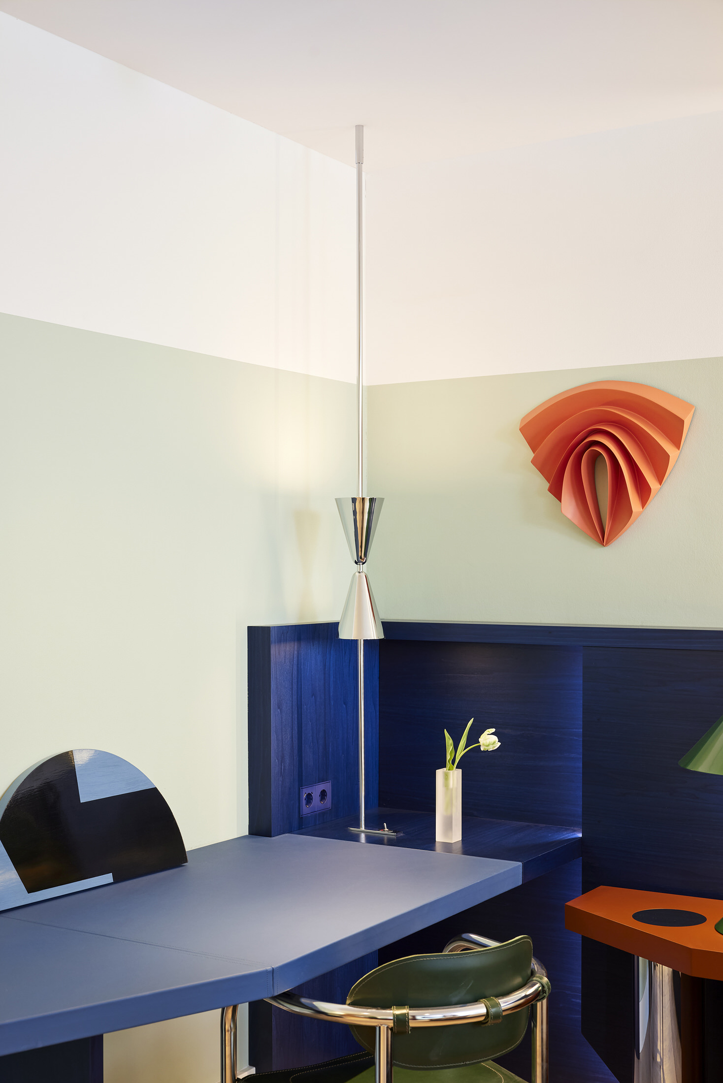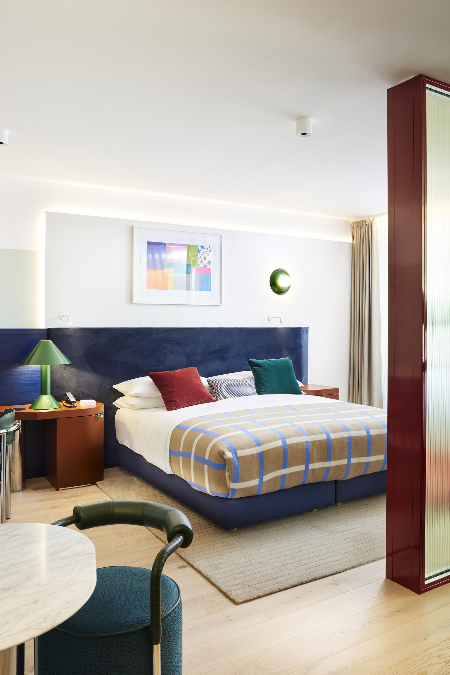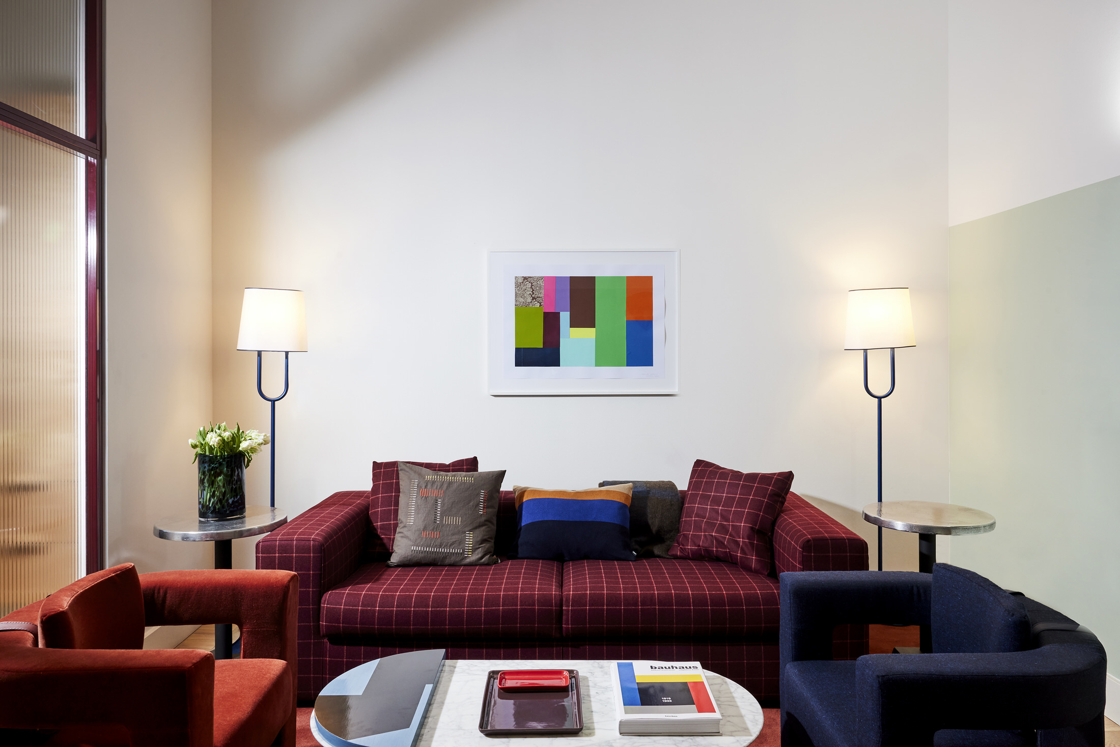 London-based architecture studio Waldo Works has completed the transformation of the former Deutsche Bank headquarters into the striking Kimpton Main Frankfurt. The hotel is located within the FOUR towers development in the city’s financial district, and spreads over 8,240 square metres.Under the direction of Tom Bartlett, Waldo Works has crafted a contemporary interpretation of Bauhaus principles whilst respecting the site’s institutional heritage. The design team approached the 155-room hotel as an exercise in contrasts, balancing cool, neutral materials like chrome and crystal against warm, opulent elements including deep green and red marble, rich velvet, and dark mahogany wood.This material interplay is immediately evident in the reception area, where bespoke desks made from leather, mahogany, aluminium and copper create striking focal points. Custom glass and nickel light fittings by Illumination Works complement screens rendered in marble, glass and green veneer, establishing the hotel’s aesthetic from the moment guests arrive.Television Centre Penthouse in London by Waldo Works.Taking lead from the post-war origins of the building, the designers followed a concept of British modernity imbued with eclectic colours and objects, with particular inspiration taken from the 1951 Festival of Britain. The lobby bar MAY continues this material narrative with a mahogany, marble and copper bar topped by a custom crystal and nickel glass holder. Signature enamelled Kimpton Frankfurt table lamps provide intimate lighting, while banquettes upholstered in leather and textile feature Tibor Fabric accents. Textile art pieces by New York-based Caroline Kaufman add a contemporary touch, complemented by lighting inspired by Dan Flavin that glows warmly throughout the evening hours.ANNI, the hotel’s 85-cover brasserie restaurant, pays homage to Bauhaus textile artist Anni Albers through its embroidered textile signage and design philosophy. Drawing inspiration from classic European grand cafés and traditional Italian restaurants in New York, the space features oversized paper lampshades, yellow grasscloth wall coverings, and elm panelling with tiled columns. Artist Zebedee Helm has contributed a collection of caricatures depicting famous Franks, adding local cultural references to the walls.Studio Ford Celebrates Legendary Women of Bauhaus with Hand-Blocked Textiles.With each block-printed design in Interwoven, an integral woman of the Bauhaus is acknowledged from Gunta Stölzl and Anni Albers to Otti Berger and Benita Koch-Otte. The guest rooms showcase attention to detail through indigo-dyed veneer and velvet headboards, green enamelled custom lighting, and tobacco leather bedside tables featuring distinctive knuckleduster handles. Desks integrate into headboard designs, cantilevering out in blue saddle-stitched leather, while custom chrome conical desk lamps span dramatically from desktop to ceiling.Bathrooms demonstrate functional innovation through red and blue taps that simplify operation for international guests, alongside glazed vanity surfaces, marble elements, and fine enamelled gridding on walls. Alabaster lighting creates a warm, welcoming atmosphere throughout these private spaces.The hotel’s art collection, curated by Laura Bartlett Studio, includes collages by Monika Gardyla, wall reliefs by Ruairiadh O’Connell, and photographs by Jenny van Sommers, reinforcing the property’s commitment to contemporary creative expression within its historically significant setting.Puro Poznań's Craft Renaissance: A Love Letter to Polish Heritage.From the sculptural reception desk to Art Nouveau-inspired glass windows, each element tells a story of local artisanship while creating thoroughly modern spaces for today's travellers. [Images courtesy of Waldo Works. Photography by Sebastian Arlt.] Share the love: Click to share on Facebook (Opens in new window) Facebook Click to share on X (Opens in new window) X Click to share on LinkedIn (Opens in new window) LinkedIn Click to email a link to a friend (Opens in new window) Email Click to share on Pinterest (Opens in new window) Pinterest Leave a Reply Cancel ReplyYour email address will not be published.CommentName* Email* Website Δ
